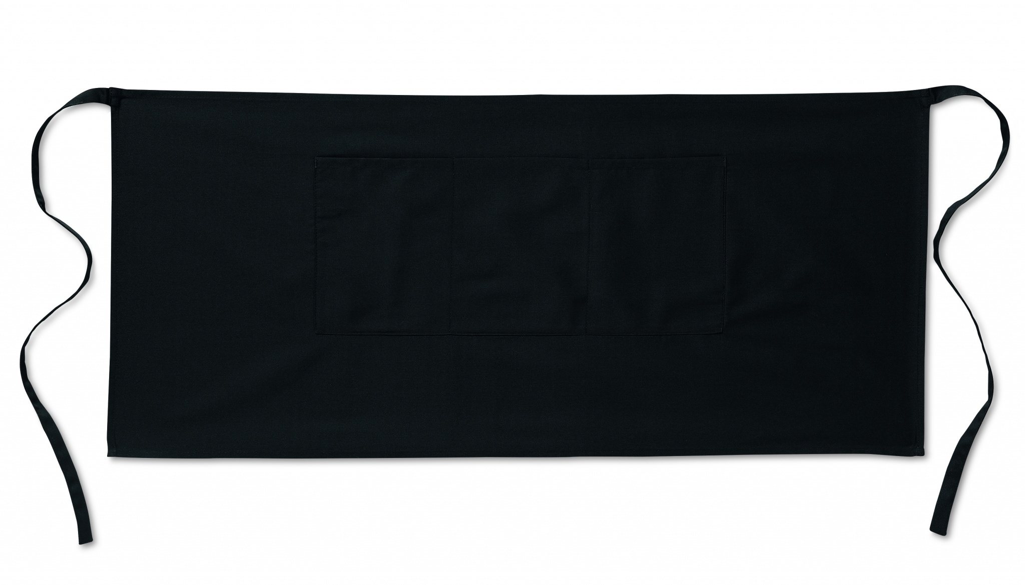 Tarjoilijan esiliina, lyhyt versio. 195 g / m², 90% polyesteriä ja 10% puuvillaa.