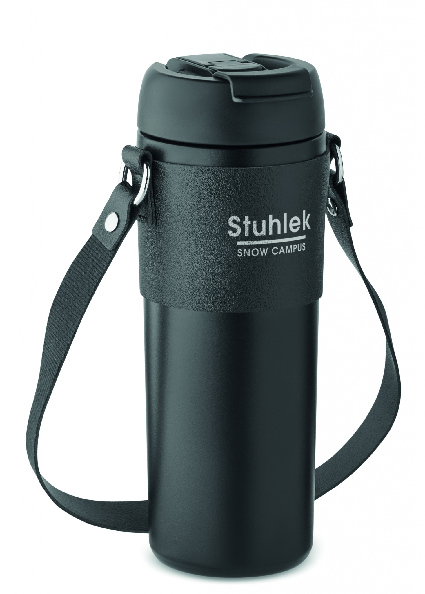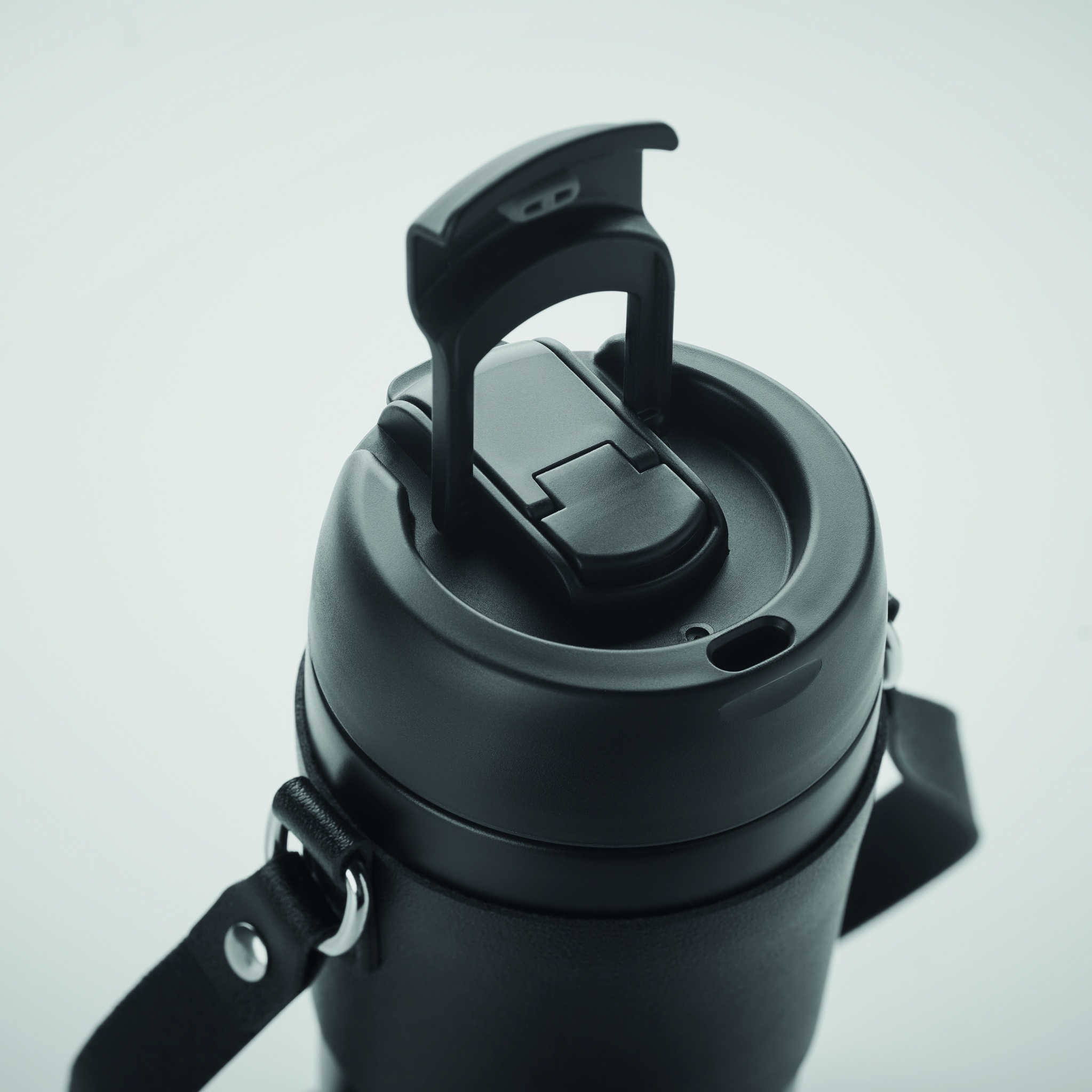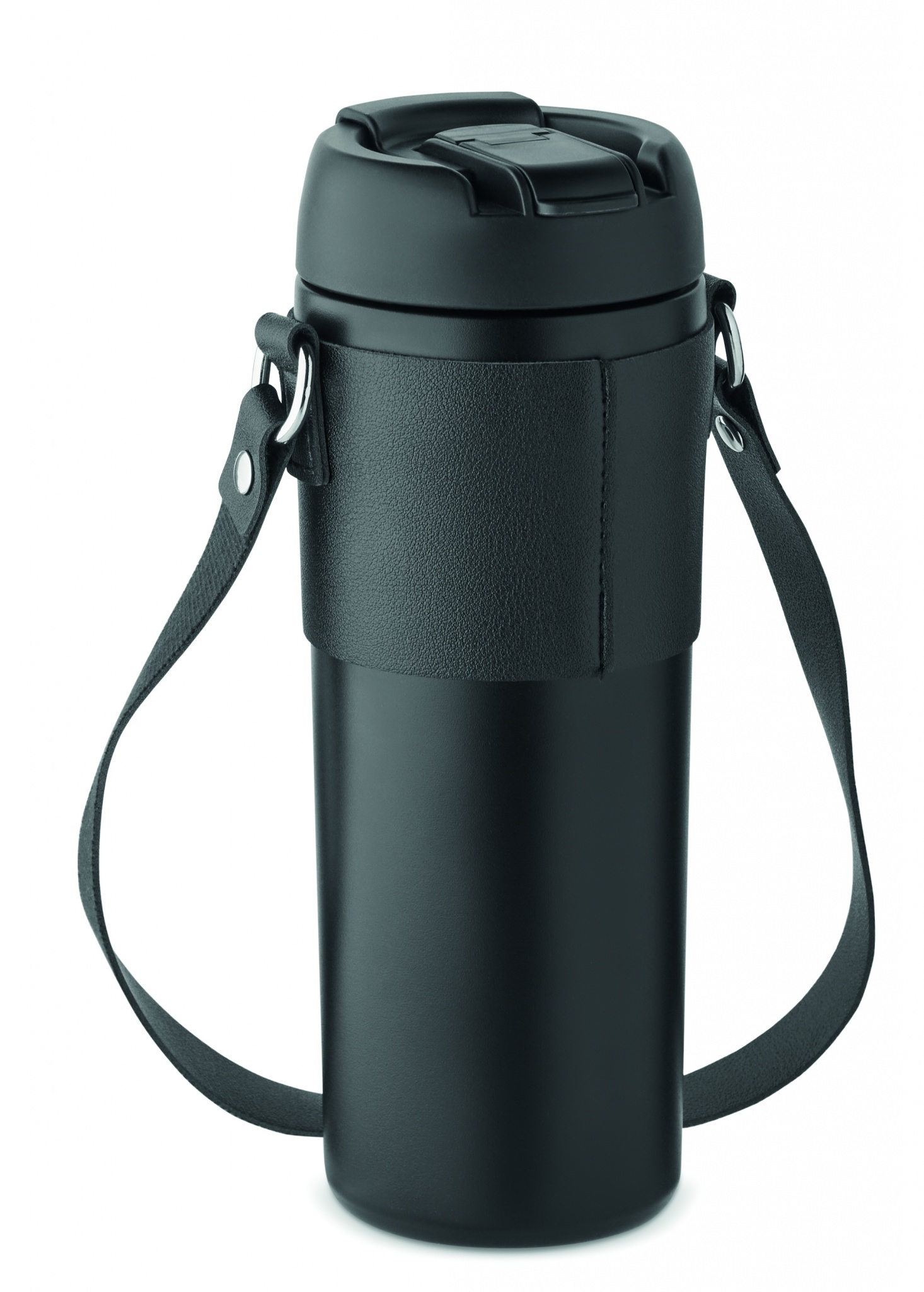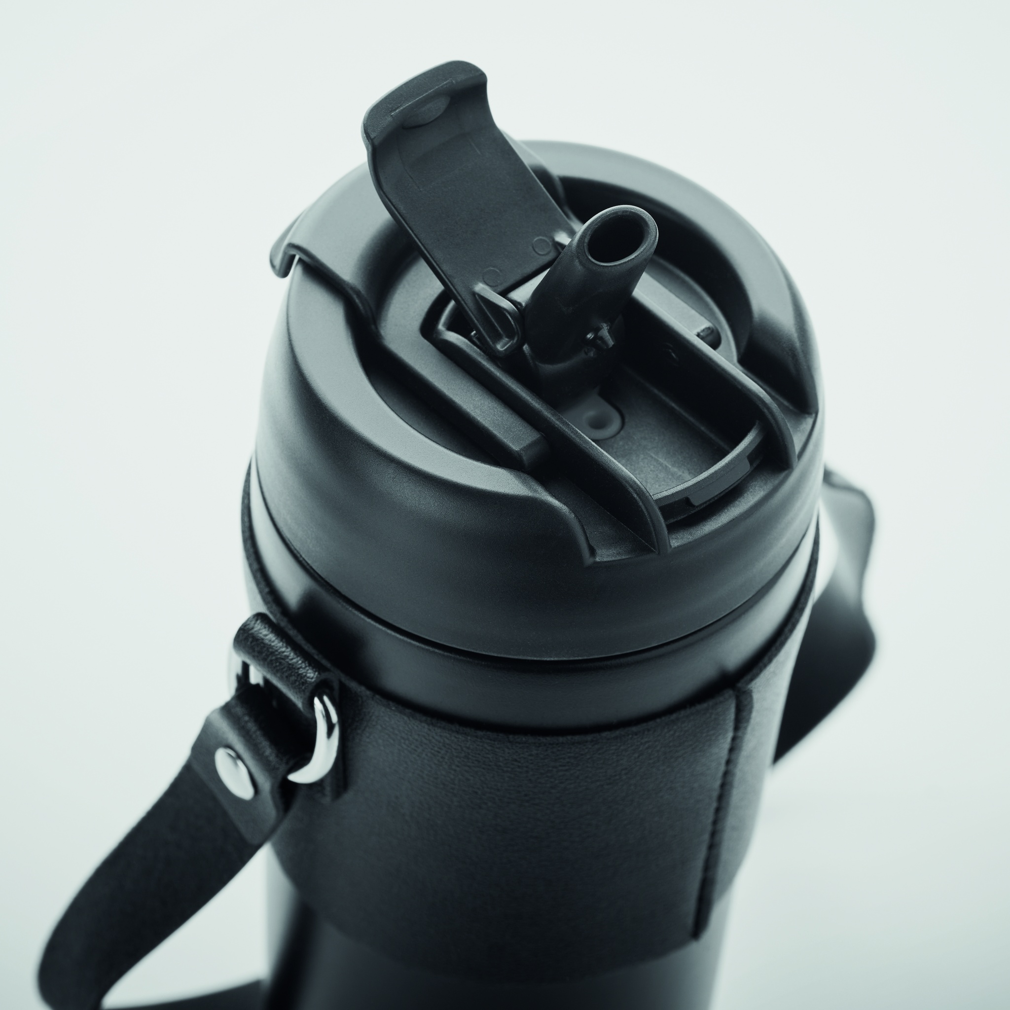 Kaksiseinäinen ruostumattomasta teräksestä valmistettu pulverimaalattu juomapullo, jossa PP-kansi (2-in-1 olkikorkki) ja PU-kantohihna. Vuotamaton. Tilavuus: 700 ml.