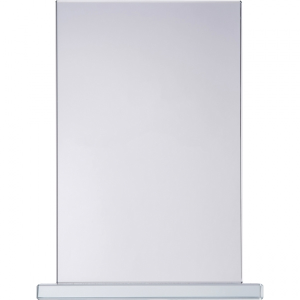 Lasinen palkintopokaali jalustalla. Palkinto on pakattu satiinivuorattuun lahjarasiaan, jossa on magneettinen suljin. Logosi on kiinnitetty palkintoon laserkaiverruksella.