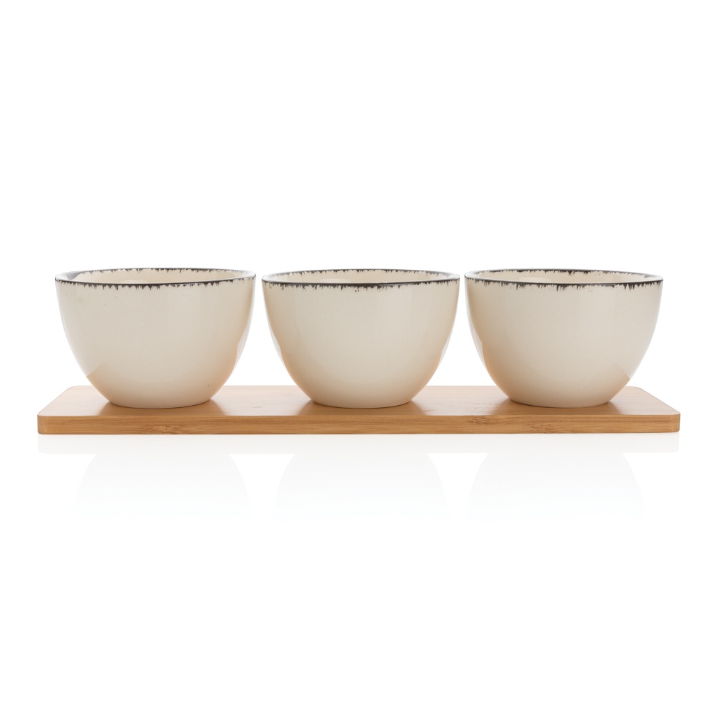 Logo trade liikelahjat tuotekuva: Ukiyo 3-osainen tarjoilukulhosetti bambutarjottimella