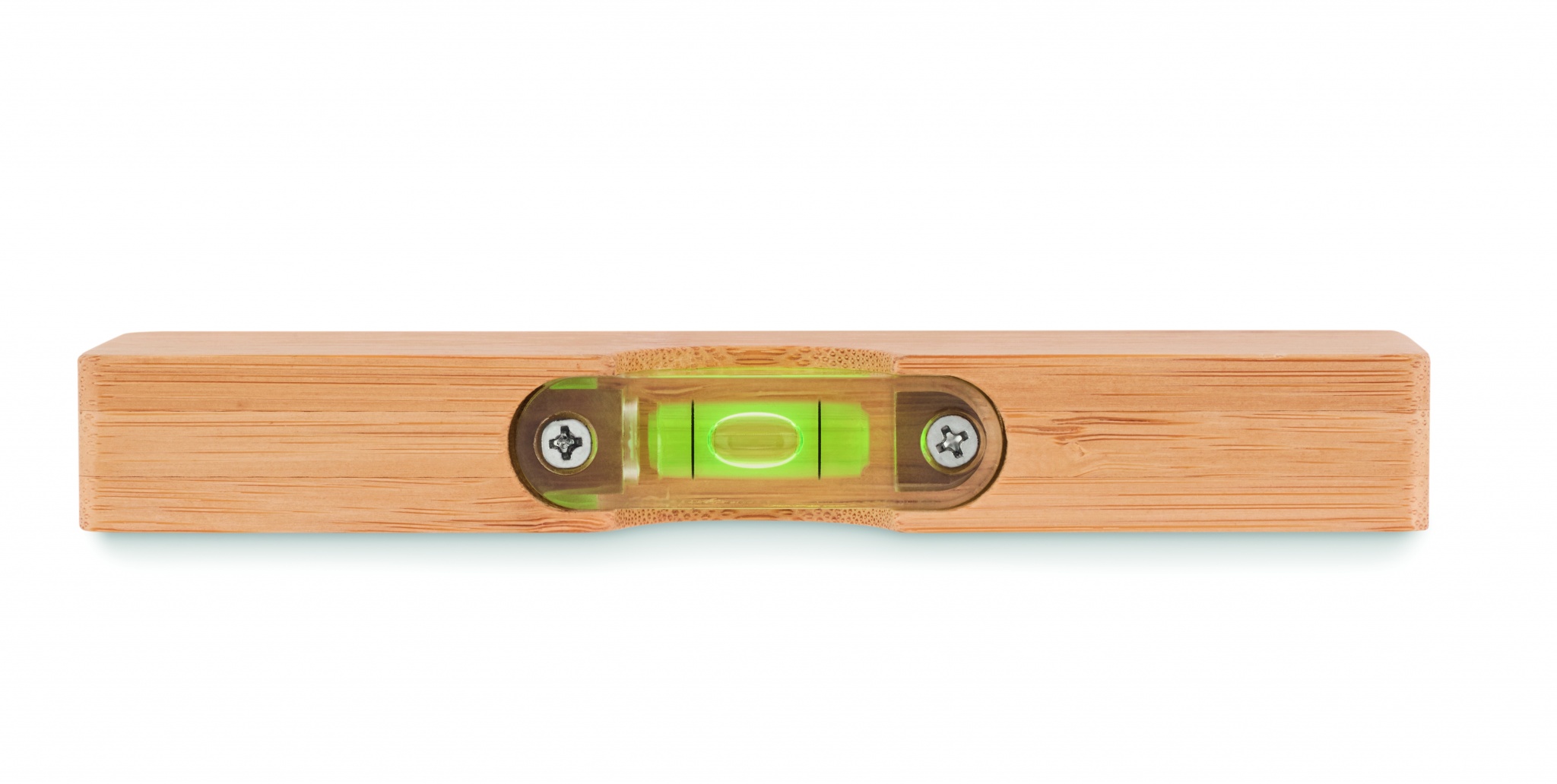 Bambusta valmistettu vatupassi ja pullonavaaja. Luonnollisen materiaalin (bambu) vuoksi, tuotteiden värissä/ koossa saattaa olla erinäisyyksiä ja tämä voi vaikuttaa painatuksen lopputulokseen.