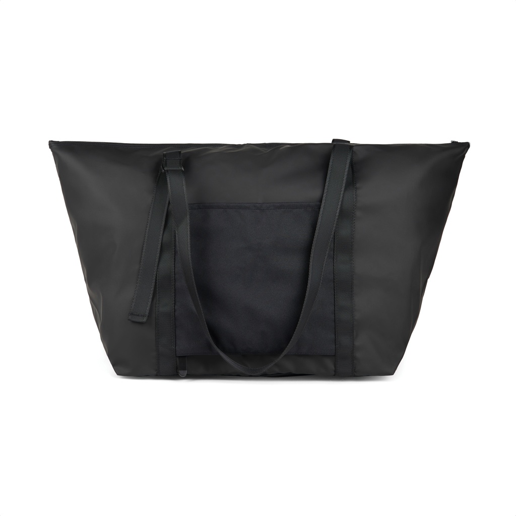 Täydellinen matkakumppani, viikonloppulaukku valmistettu erittäin kevyestä GRS-sertifioidusta polyesterista, jossa on kestävä PU-pinnoite. Laukku taitetaan helposti kokoon ja se kiinnitetään älykkäästi remmillä ja soljella, jotta se voidaan säilyttää kompaktisti käyttämättömänä. Laukussa on älykäs ulkotasku, jonka vetoketju voidaan avata pohjasta, jolloin se voidaan asettaa turvallisesti matkalaukkusi kahvan yli. Säädettävät hihnat mahdollistavat sen kantamisen kädessä tai olalla. Pienempi sisätasku tärkeimmille tavaroillesi. Nämä monikäyttöiset laukut eivät ole vain kevyitä kantaa, vaan ne on suunniteltu taittumaan helposti kokoon ja säilyttämään kompaktisti matkalaukussasi, tarjoten mukavaa lisätilaa ilman tarpeetonta painoa. Kokonaiskierrätetty sisältö perustuu tuotteen kokonaispainoon. Tämä tuote sisältää 52% GRS-sertifioitua kierrätettyä polyesteria.