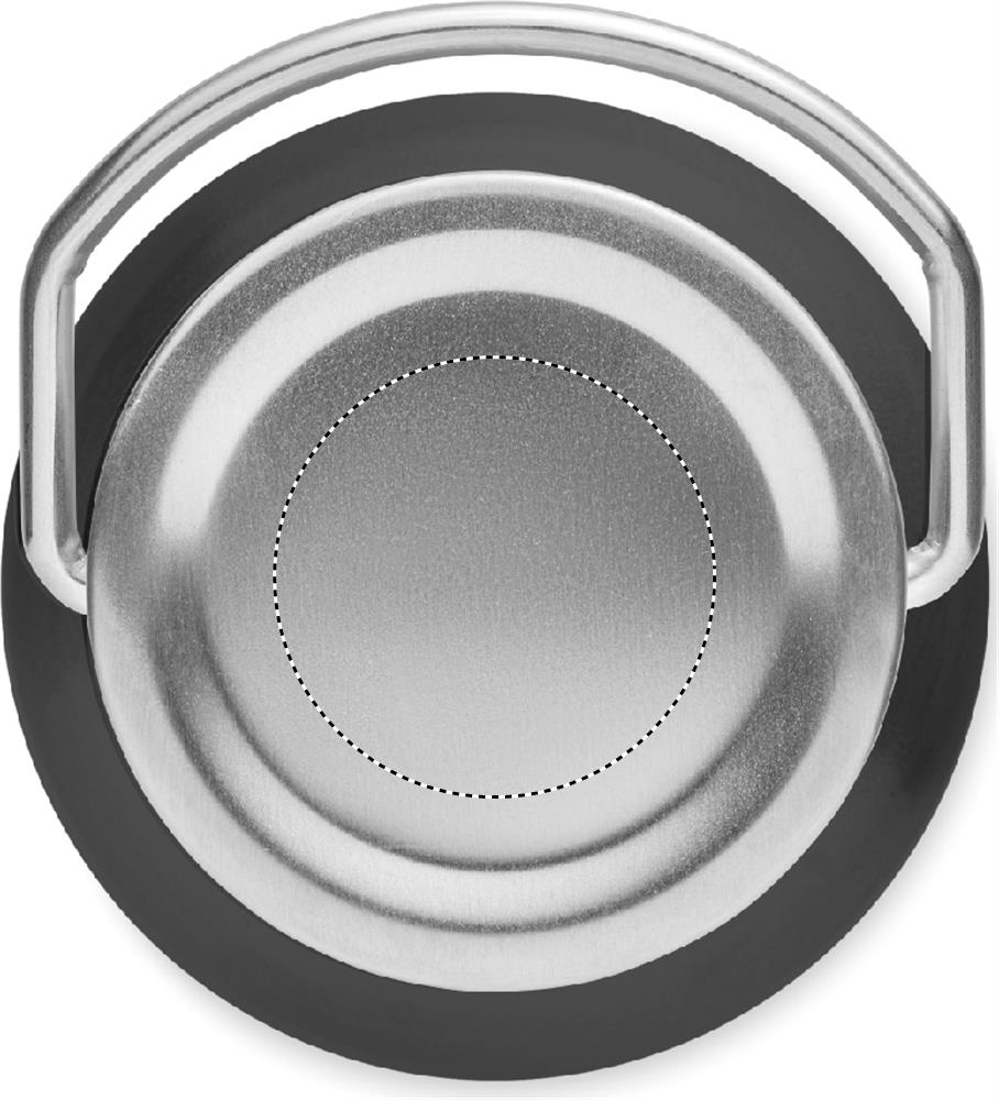Perdirbto aliuminio butelis su nerūdijančio plieno rankenos dangteliu. Nesandarus. Talpa: 500 ml.