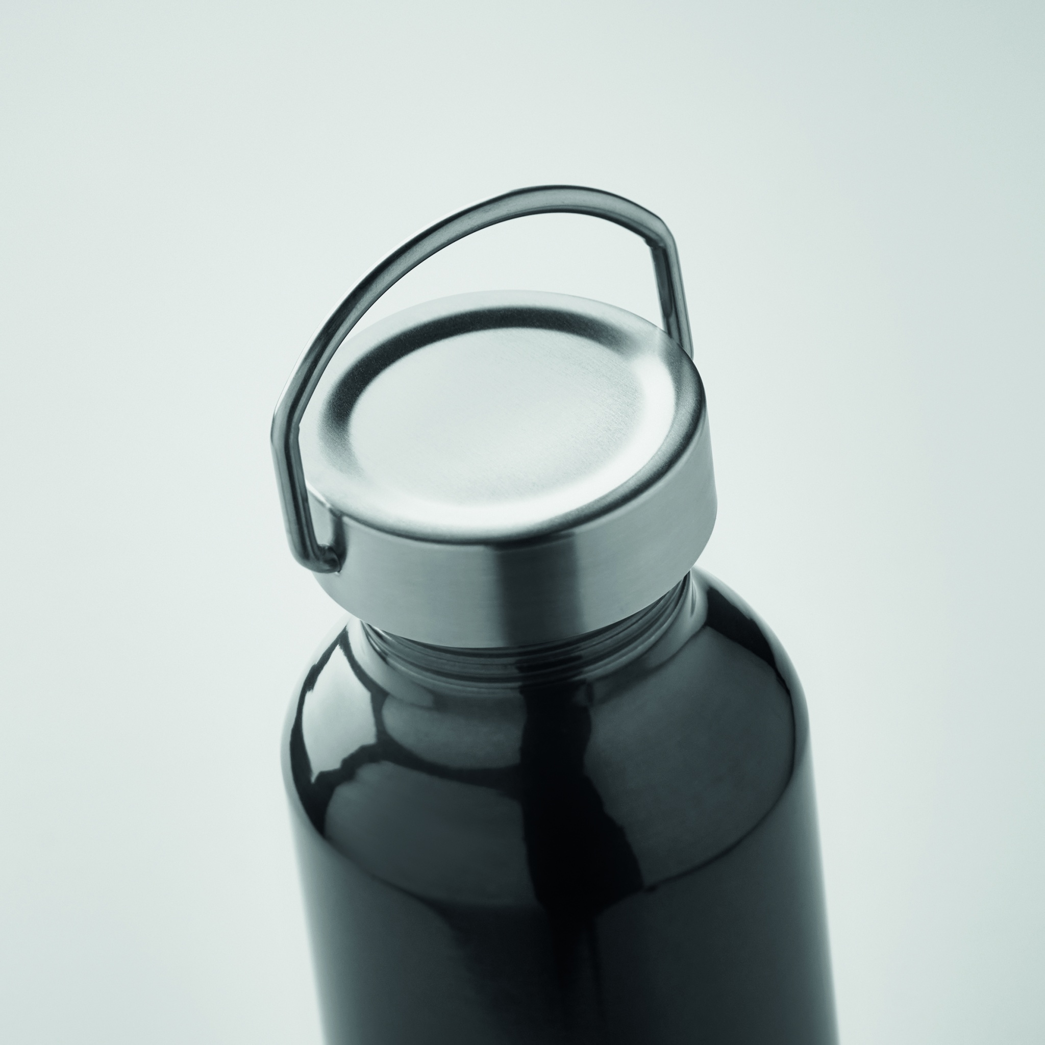500 ml perdirbto aliuminio butelis su nerūdijančio plieno rankenėlės dangteliu, Juoda