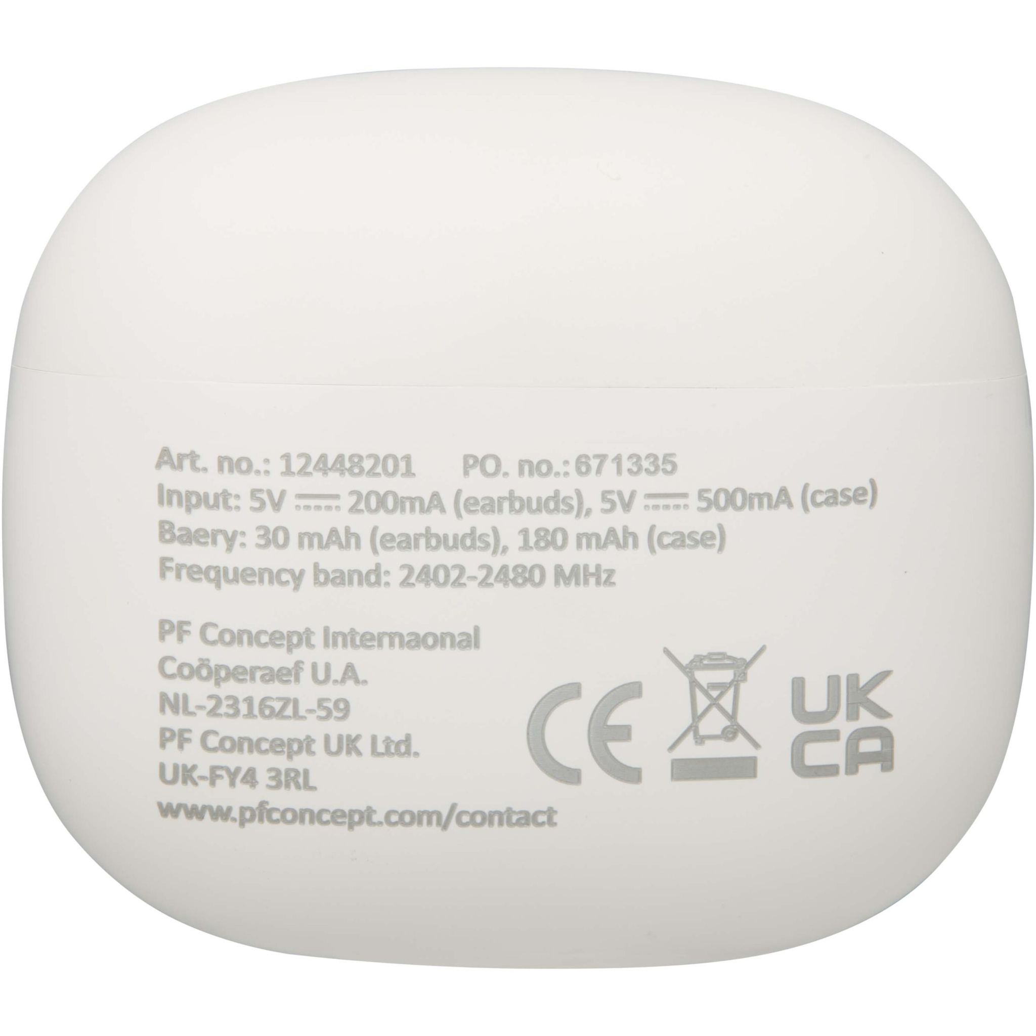 „Alterf“ perdirbto plastiko „True Wireless Bluetooth®“ ausinės su silikoniniais ausų antgaliais, Balta