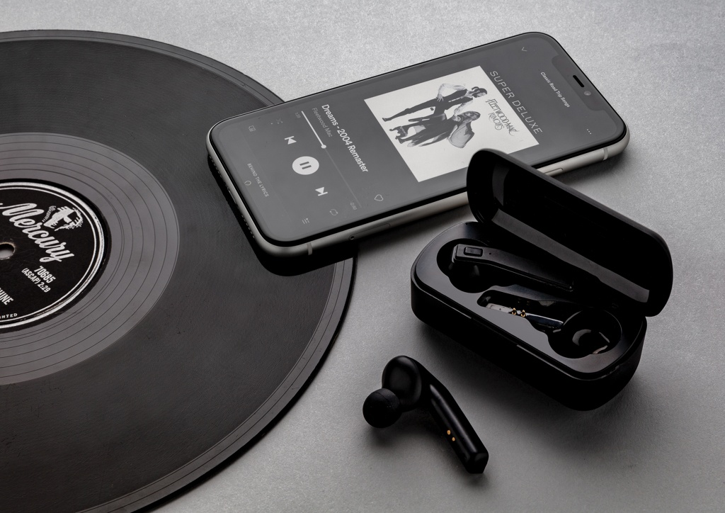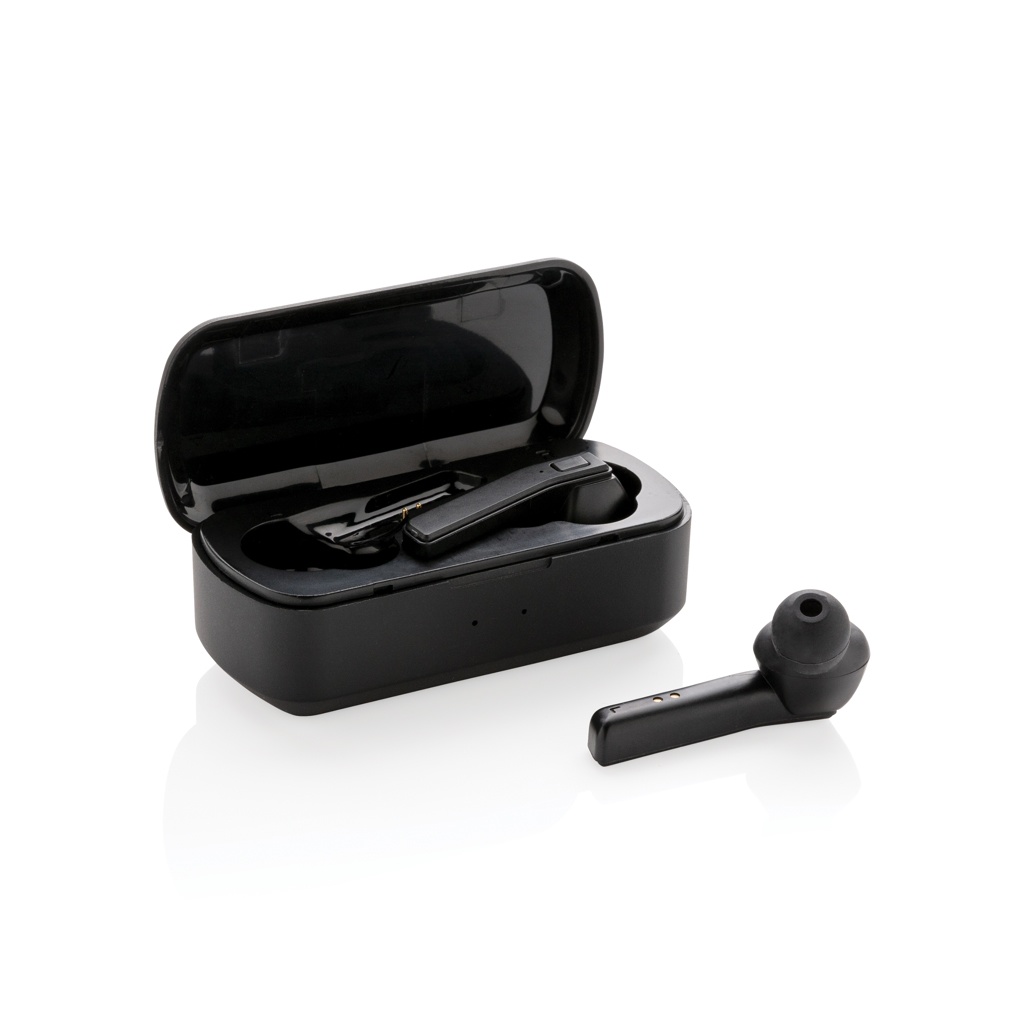 Tegul muzika sklando su šiomis tikromis belaidėmis ausinėmis įkrovimo dėkle. Ausinės turi 35 mAh bateriją ir jas galima pakartotinai įkrauti 500 mAh įkrovimo dėkle per 1 valandą. Su automatinio susiejimo funkcija, todėl lengva susieti su mobiliuoju įrenginiu. Grojimo laikas vidutiniu garsu apie 3 val. Su BT 5.0 optimaliam ryšiui. Veikimo atstumas iki 10 metrų. Su imtuvu ir mikrofonu. Įskaitant 3 dydžių silikoninius ausų antgalius. ABS medžiagos korpusas.