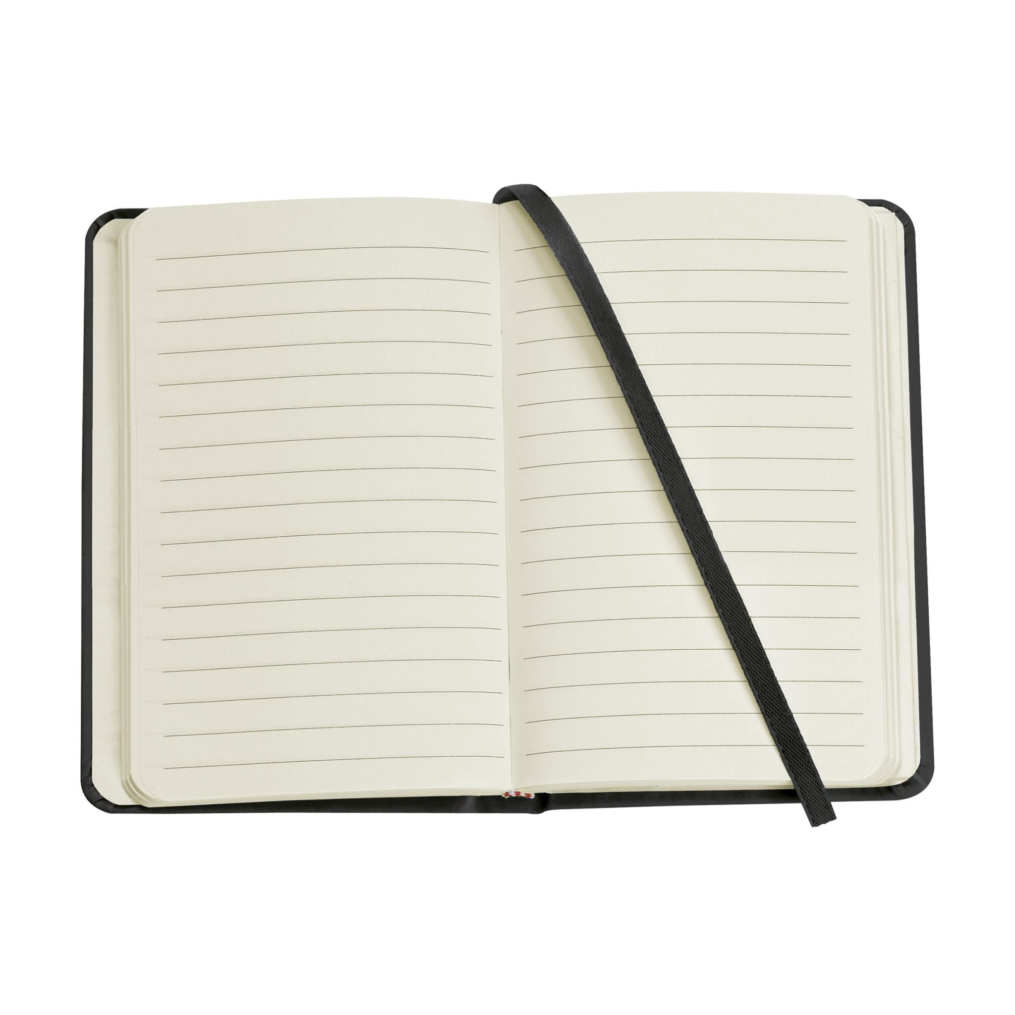 Kompaktiškas A6 formato sąsiuvinis su apytiksl. 96 lapai/192 puslapiai kreminės spalvos linijinio popieriaus (80 g/m²). Su tobulu įrišimu, kietu viršeliu, kišene, elastine užsegimu ir šilkine juostele.