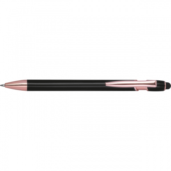 Pusiau gelinis rašiklis, pagamintas iš perdirbto aliuminio, su lietimui jautriu rašikliu ir didelės talpos mėlynai rašoma kasetėle (1 mm galiukas). Jūsų logotipas ant korpuso užklijuotas lazeriu graviruojant.