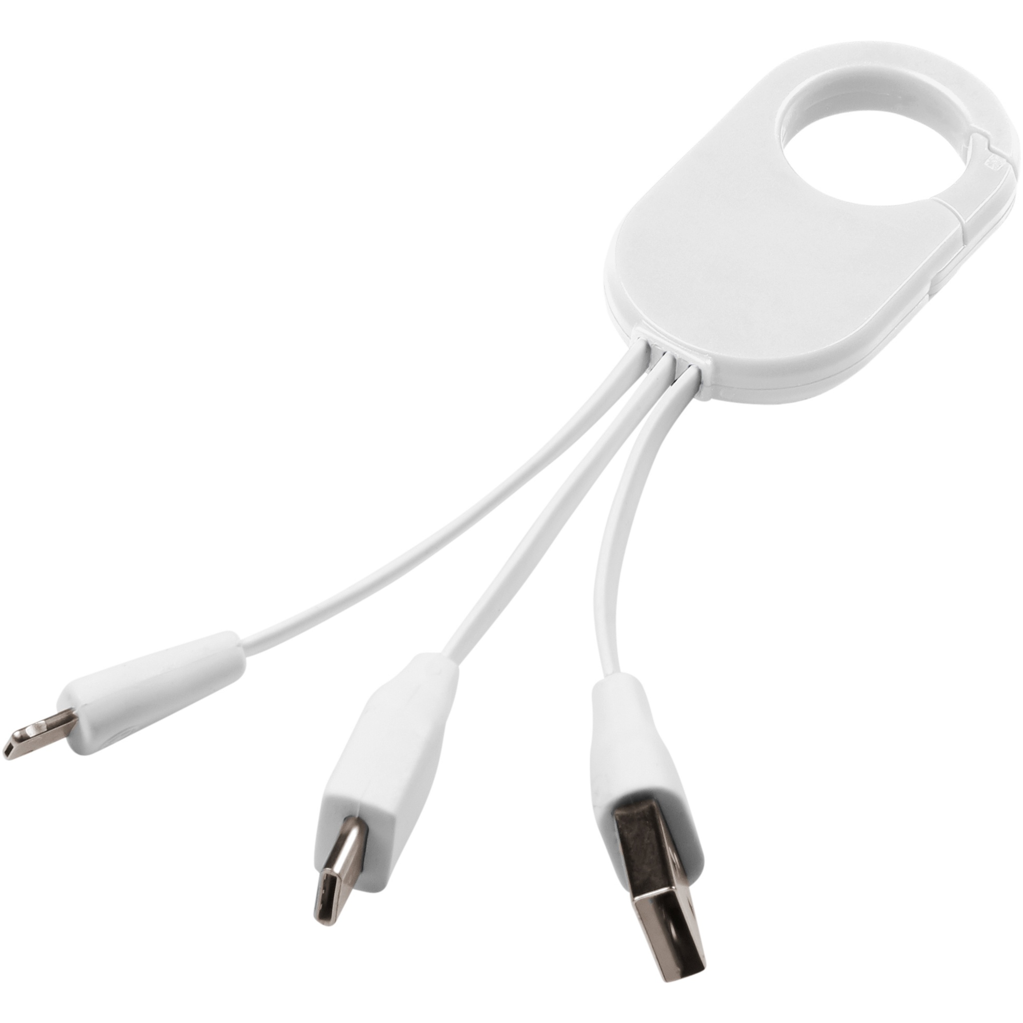 „Troop 3-in-1“ įkrovimo laidas turi C tipo USB antgalį ir „2-in-1“ suderinamą antgalį, skirtą „Apple® iOS“ ir „Android“ įrenginiams. Jame yra karabino segtukas, kad būtų galima lengvai užsikabinti ant krepšio.