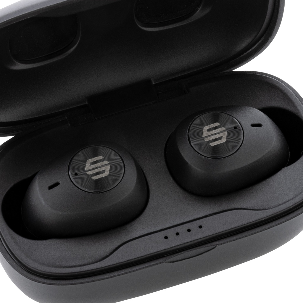 Atidarius dėklą ir įdėjus ausines pasigirsta garsas. Ausinės ir nešiojamas įkrovimo dėklas yra sukurti taip, kad juos būtų galima nešiotis, kad ir kur eitumėte, ir lengvai tilptų į kišenę. Patogios ausinės gali klausytis iki 6 valandų, o įkrovimo dėklas leidžia atkurti iki 20 valandų. Pakanka, kad tęstumėte visą dieną! Priimdami skambutį tiesiog atsiliepkite į jį stereofoniniu garsu, nes ENC integruotas mikrofonas užtikrina nepriekaištingą skambučio kokybę. Dėl IPX 4 įvertinimo ausinės yra atsparios oro sąlygoms, todėl nesijaudinkite jų neštis į lauką. Ausinės ir įkrovimo dėklas pagaminti iš RCS (Recycled Claim Standard) sertifikuoto perdirbto ABS. Bendras perdirbtas kiekis: 55 % nuo bendros prekės svorio. RCS sertifikatas užtikrina visiškai sertifikuotą perdirbtų medžiagų tiekimo grandinę. „Urban Vitamin“ gaminiai gaminami be PVC ir supakuoti į sumažintas plastikines pakuotes.