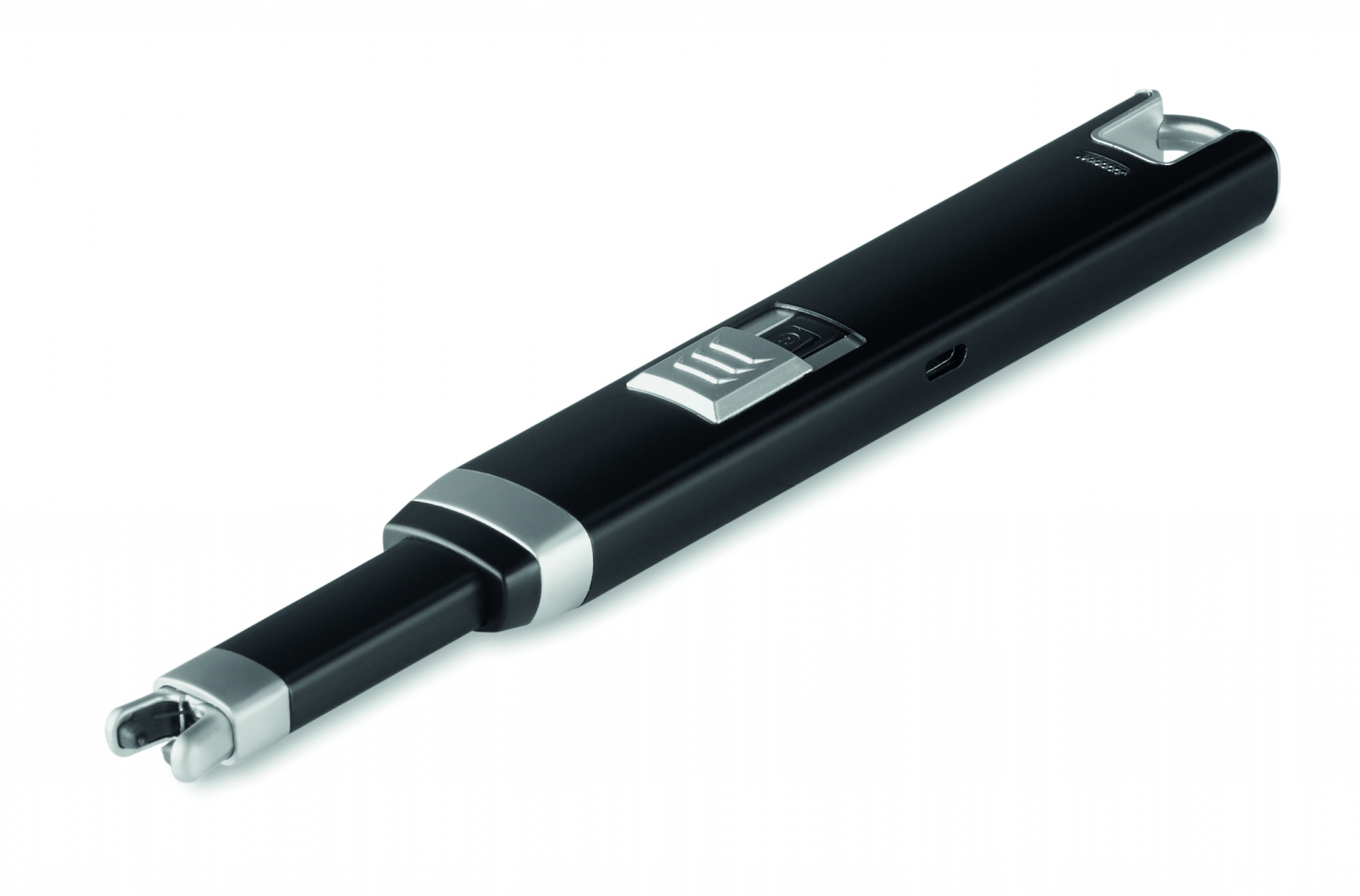 Liels USB uzlādējams aizdedzes šķiltavas ar viena loka liesmu. Li-Ion 220 mAh akumulators. Iekļauts USB uzlādes kabelis.