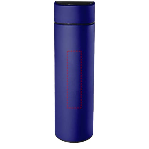 Dubultsienu 500 ml izolēta nerūsējošā tērauda pudele ar antibakteriālu apstrādi un temperatūras sensoru. Pateicoties "Touch & Light" sistēmai, dzēriena temperatūra tiek parādīta uz pudeles vāciņa (Celsija). Piemērots gan karstiem, gan aukstiem dzērieniem. Piegādāts cilindriskā dāvanu kastītē, kas izgatavota no pārstrādāta papīra. Izmērs: Ø 47 x 225 mm. Iekļauts akumulators: CR 2450 (3V). Akumulatoru nevar nomainīt. Var parādīt temperatūru 20 000 reižu.