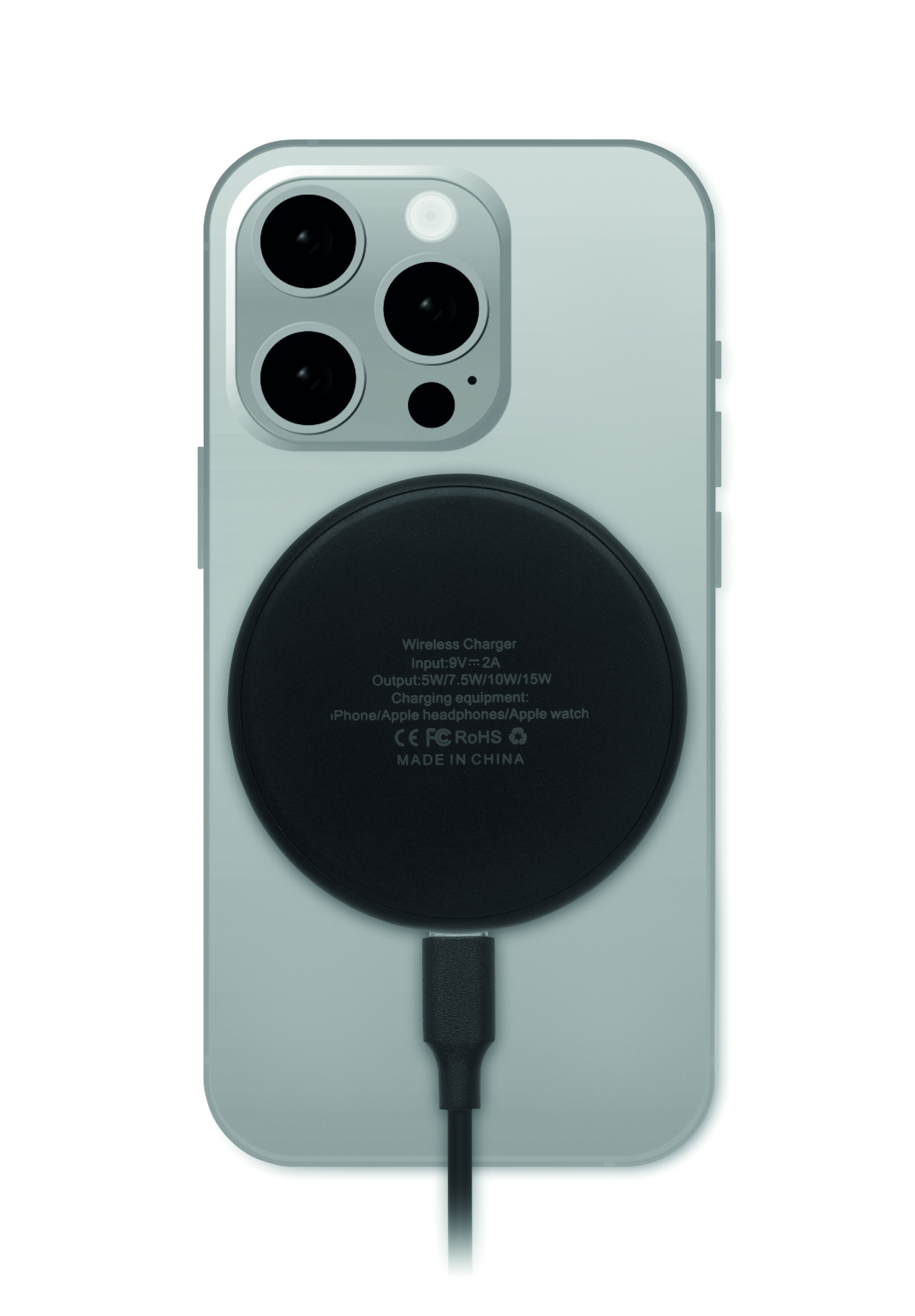 3 in 1 wireless charger 15W . It includes a magnetic wireless charger 15W, smartwatch charger (Apple®only) and TWS charger. Cable length: 1M. Input: 2-in-1 Type-C and Type-A.