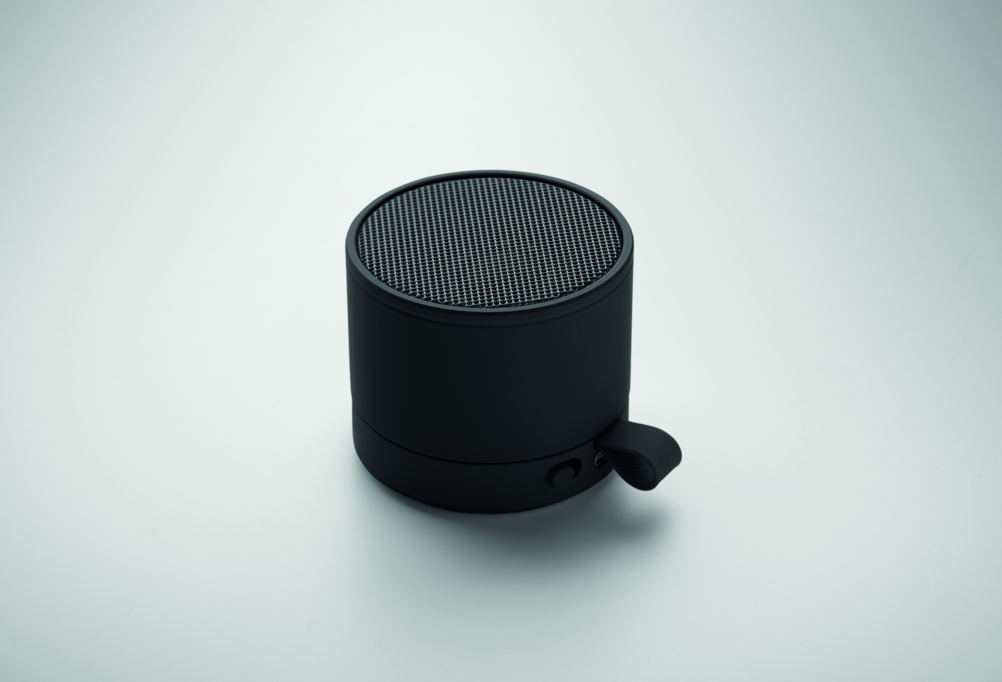Wireless 5.1 speaker with metal body and rubber finish. Features 3W mono sound. Includes rechargeable and replaceable 500mAh battery. Compact and modern design.