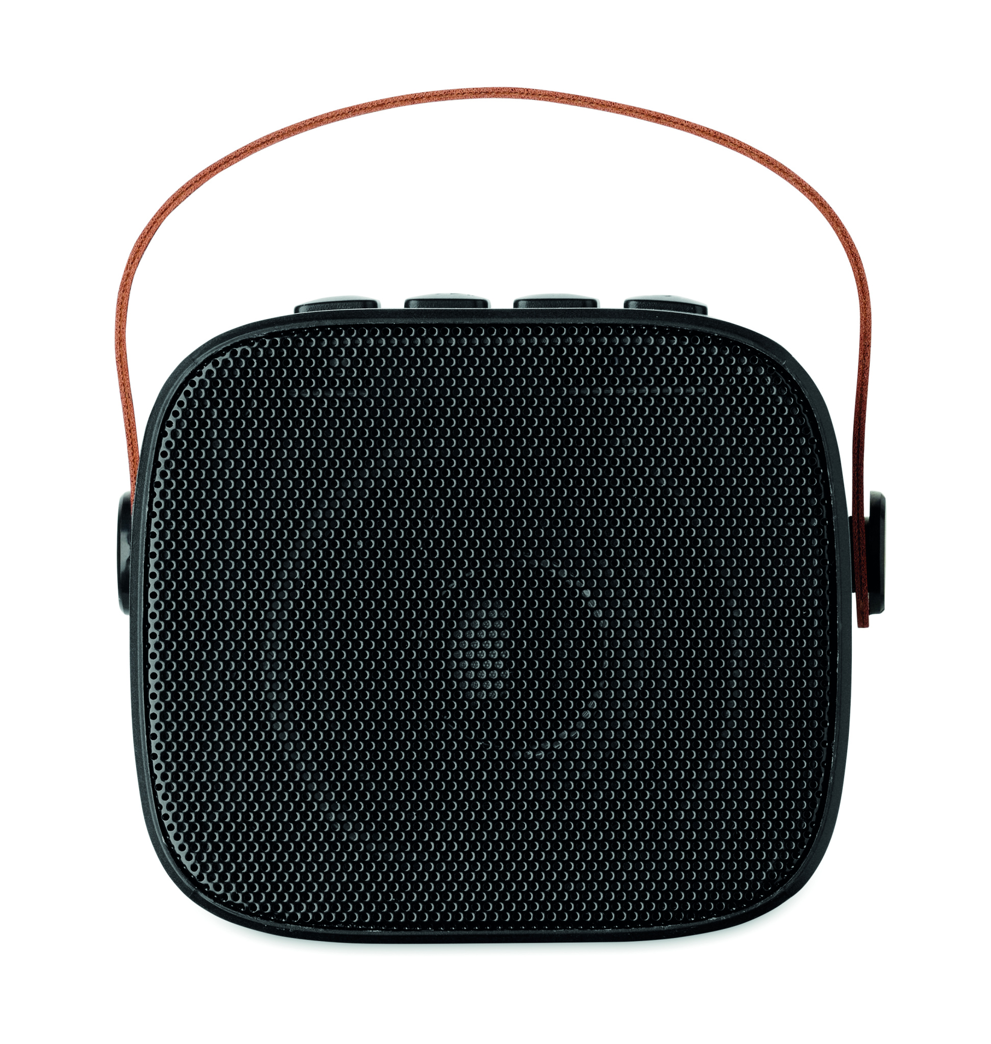 5.0 wireless speaker in recycled ABS with PU handle. 1 Rechargeable Li-ION 500 mAh battery included. Includes an SD card port and an AUX/ USB cable. Output data: 5W, 3 Ohm and 5V. Playing time approx. 4h.