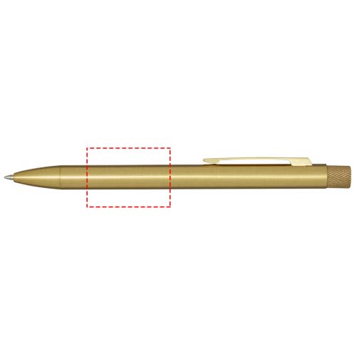 Шариковая ручка с цветным аэрозольным покрытием. Кнопка и наконечник изготовлены из латуни, ствол — из переработанной латуни, а зажим — из железа. Цвет чернил: черный. Длина непрерывной линии: 1000 метров. Размер пера: 1,0 мм. Поставляется в подарочной коробке.