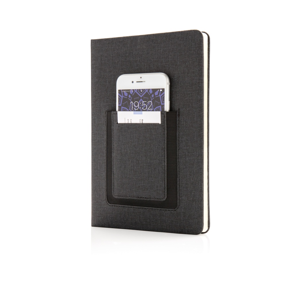 Блокнот формата А5 класса люкс с карманом для телефона, черный