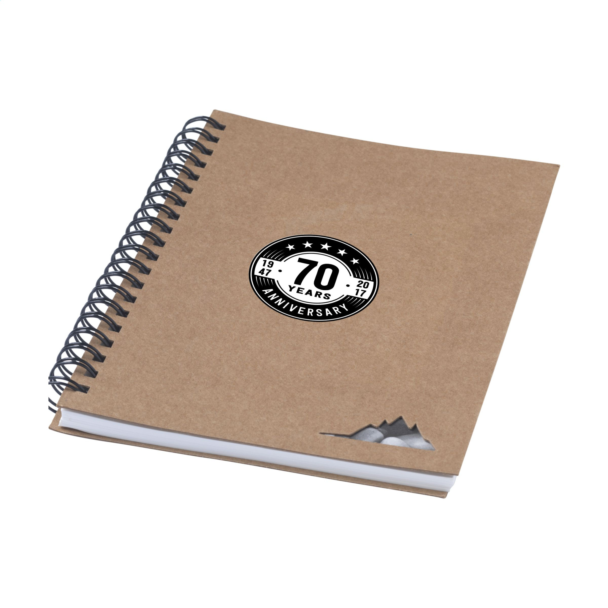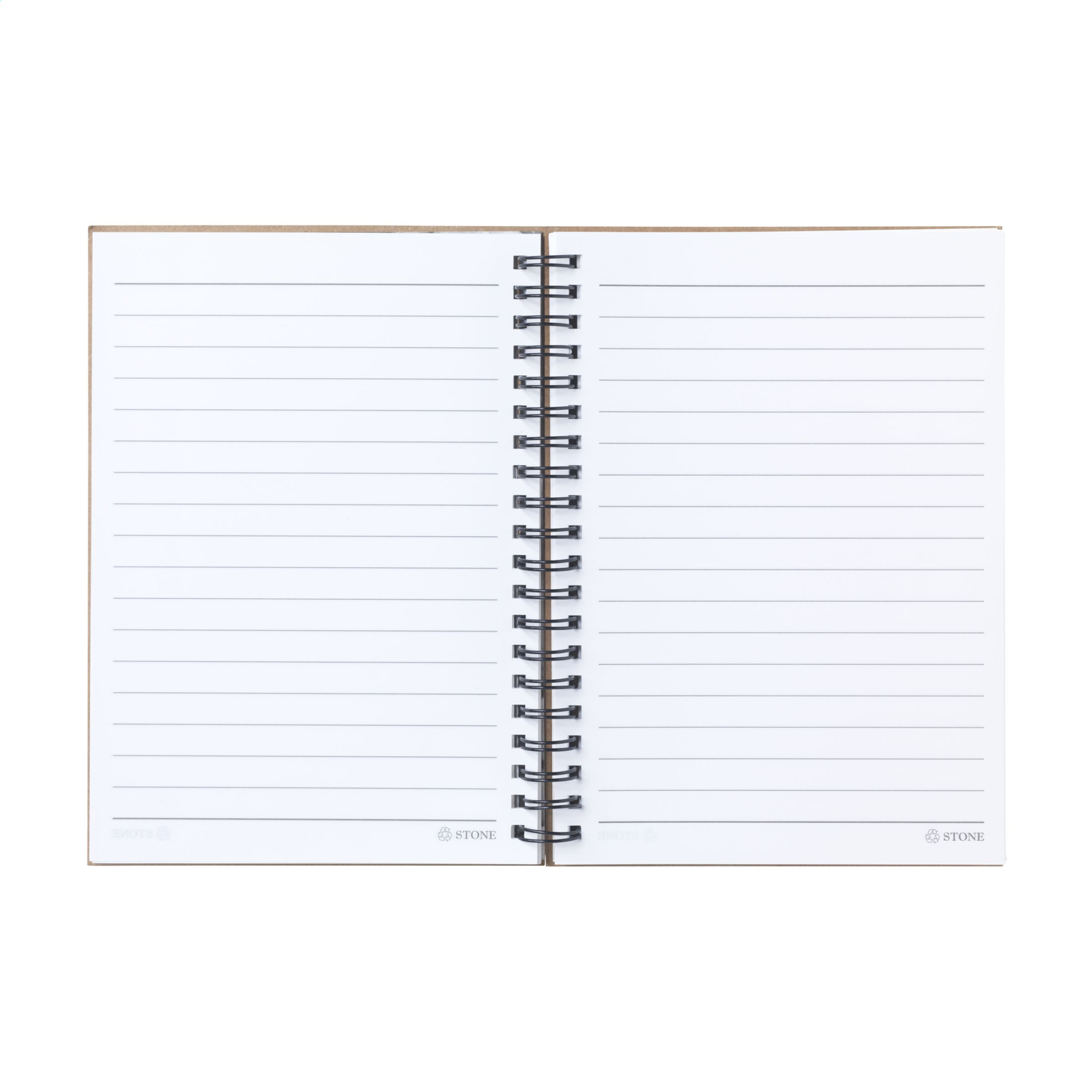 WoW! Блокнот с обложкой из переработанного картона. С 70 линованными листами/140 линованными страницами (120 г/м²) из натурального камня: 80% карбоната кальция и 20% пластика HDPE. Бумага антибактериальная, водонепроницаемая, устойчива к разрывам и пятнам. С металлическим переплетом.