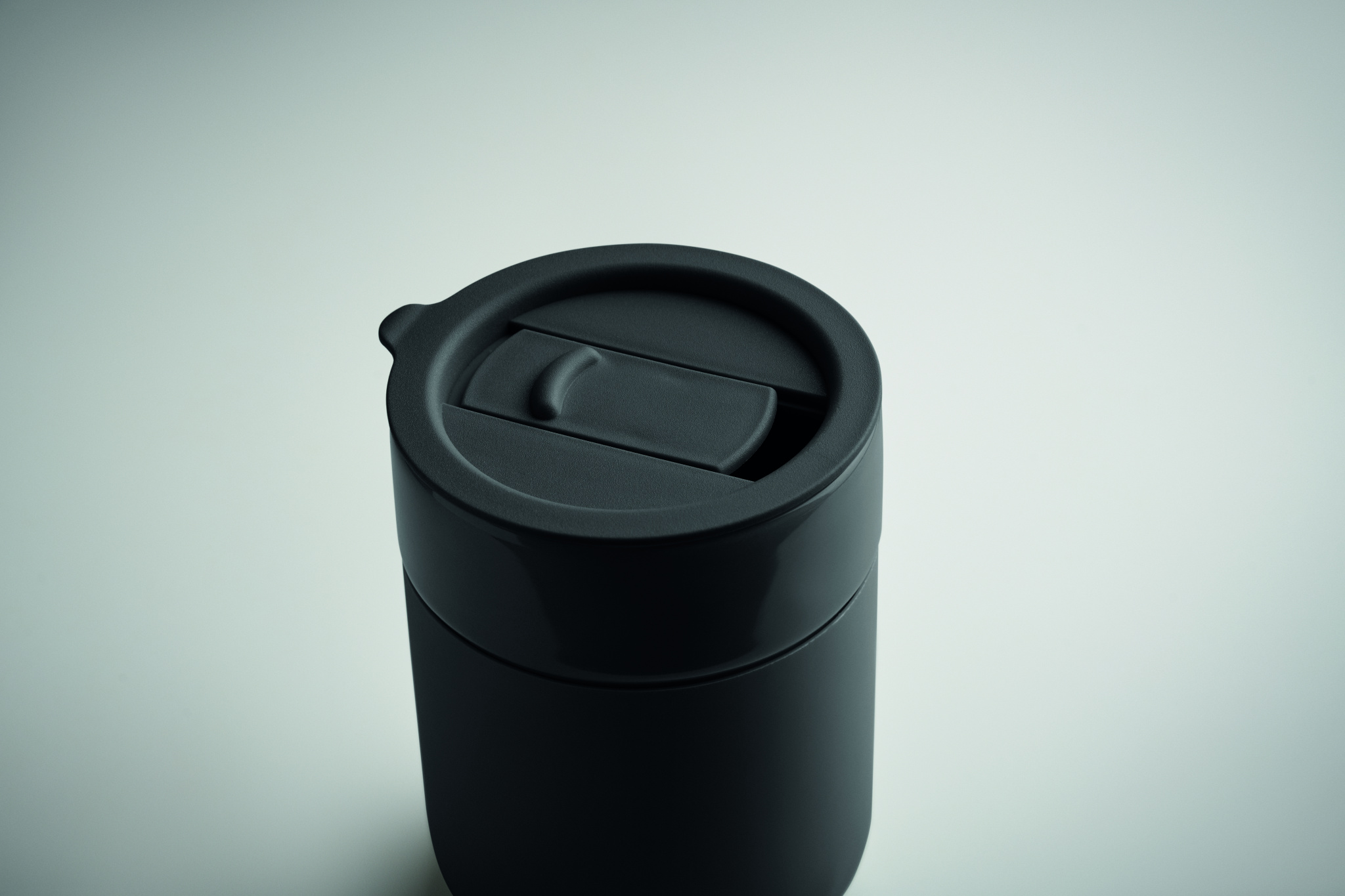 Ceramic tumbler with silicone sleeve and PP lid. Capacity: 330 ml.