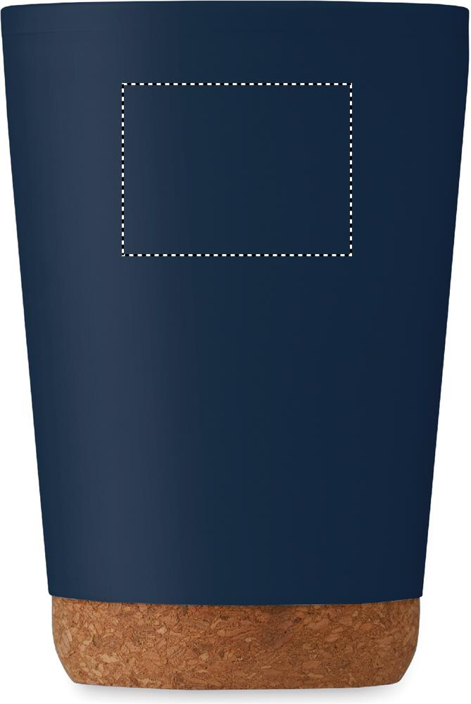 Double wall tumbler in PP with cork base and slide closing drinking mouthpiece lid in PS and ABS. Capacity: 300 ml.