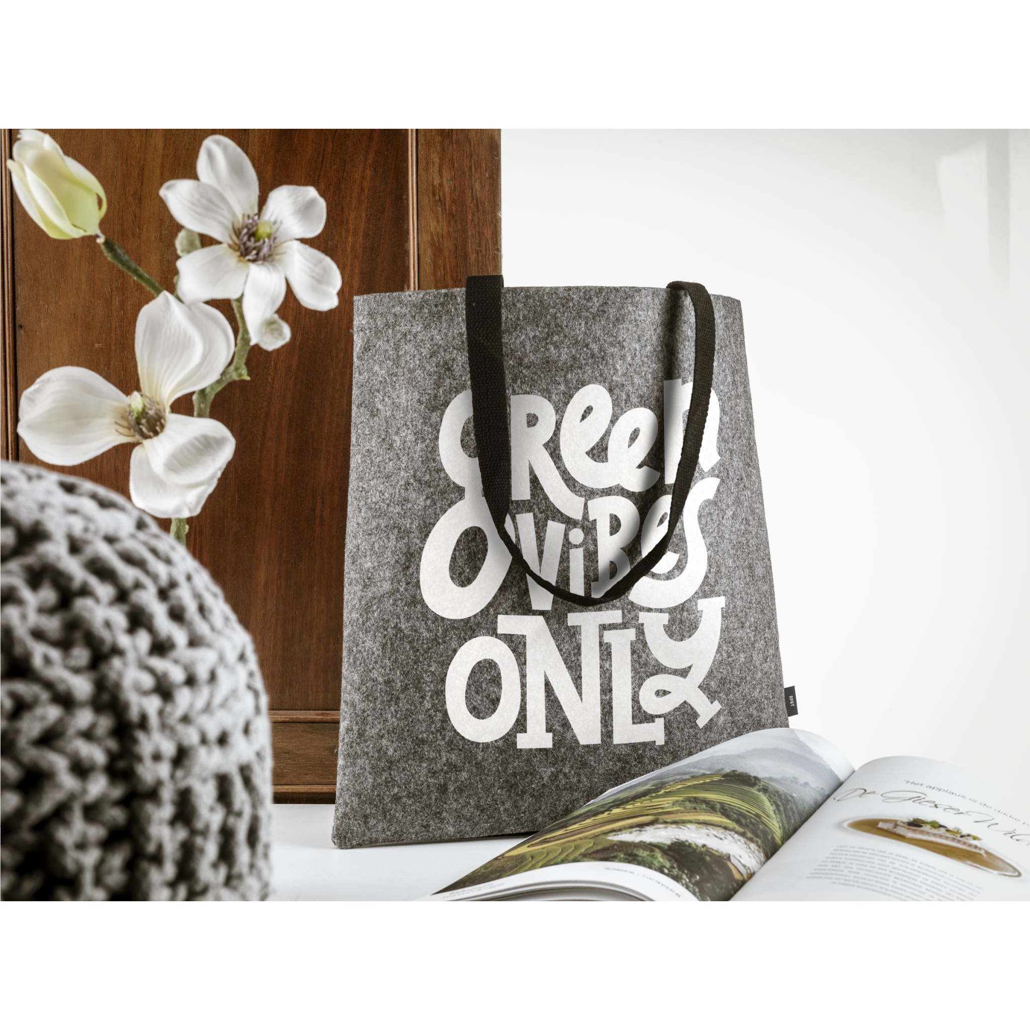 Ух ты! Прочный шоппер из толстого высококачественного войлока RPET. С длинными плетеными хлопковыми ручками. Сертифицирован GRS. Общее количество переработанного материала: 75%.