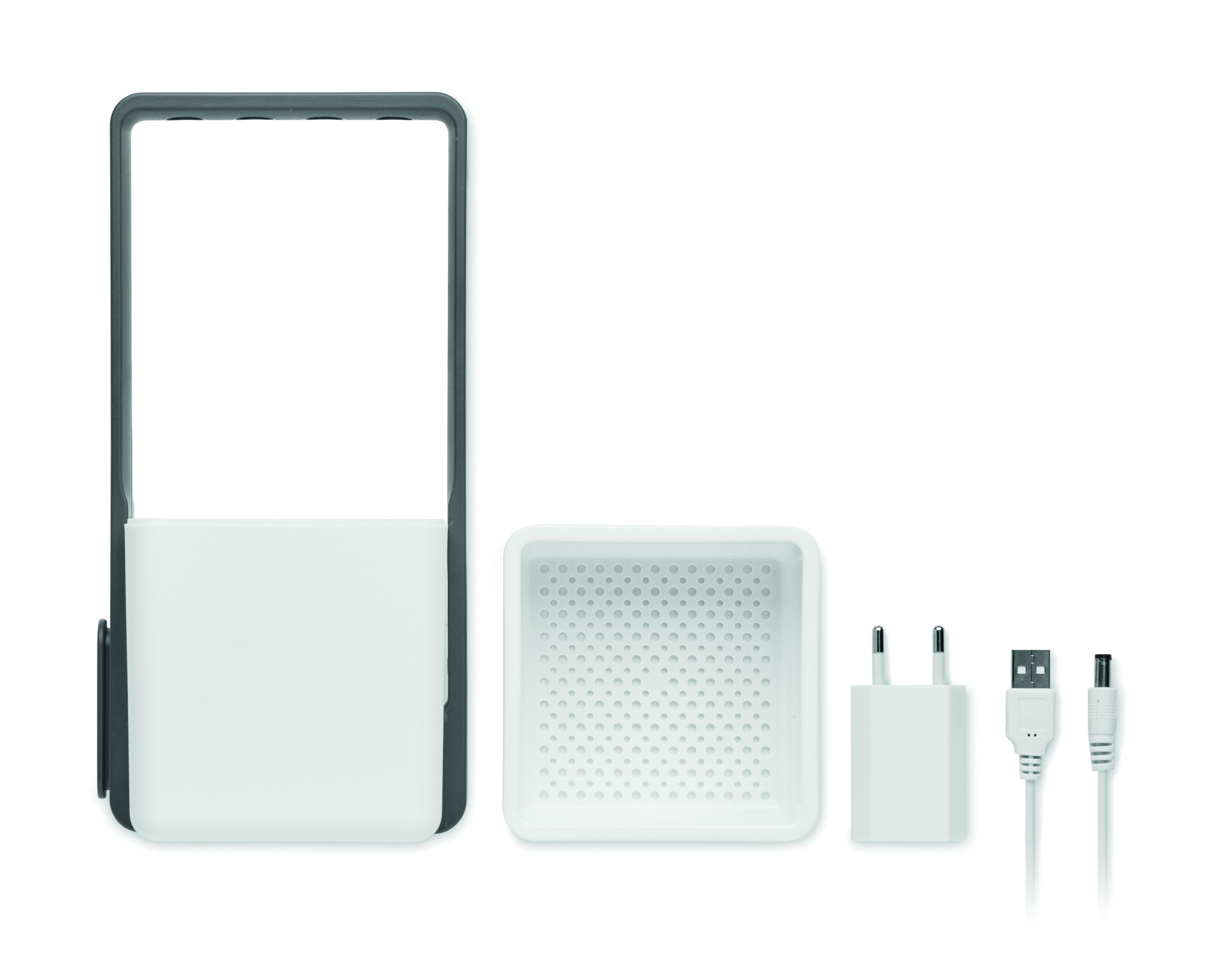 Indoor garden with 4 LED grow light in PP and ABS. Includes 1 pot, 1 filter/ reservoir and 1 USB cable, A/C adapter. Low voltage input: 5V. Not suitable for sale in the UK.