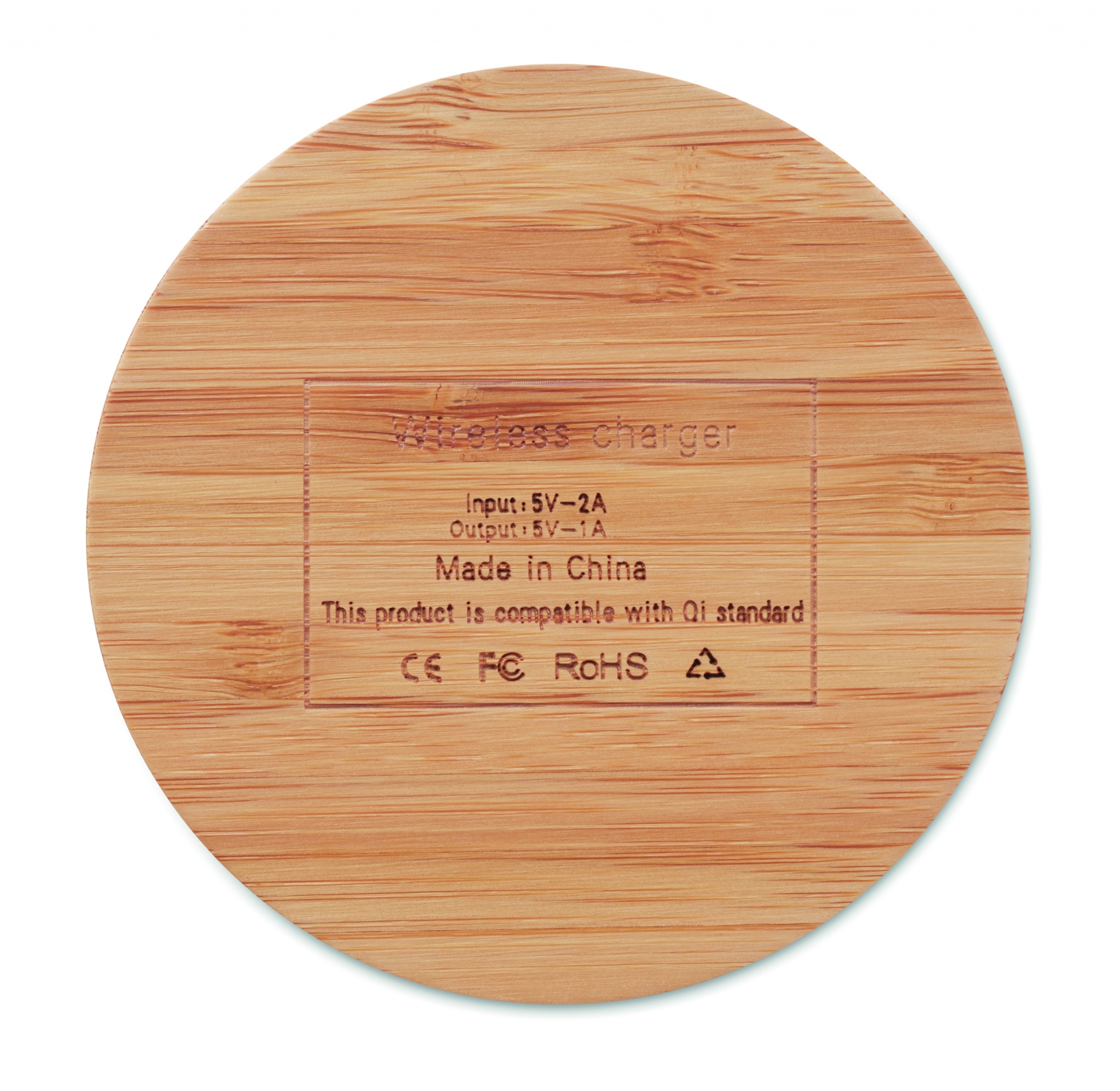Беспроводное зарядное устройство из бамбука. Подсоедините устройство к своему компьютеру, положите сверху смартфон и пусть он заряжается. При зарядке горит голубой диод. Выход: DC5V/1A (5W) Совместимо с устройствами типа QI такие как последние андроиды, iPhone® 8, X и новее.