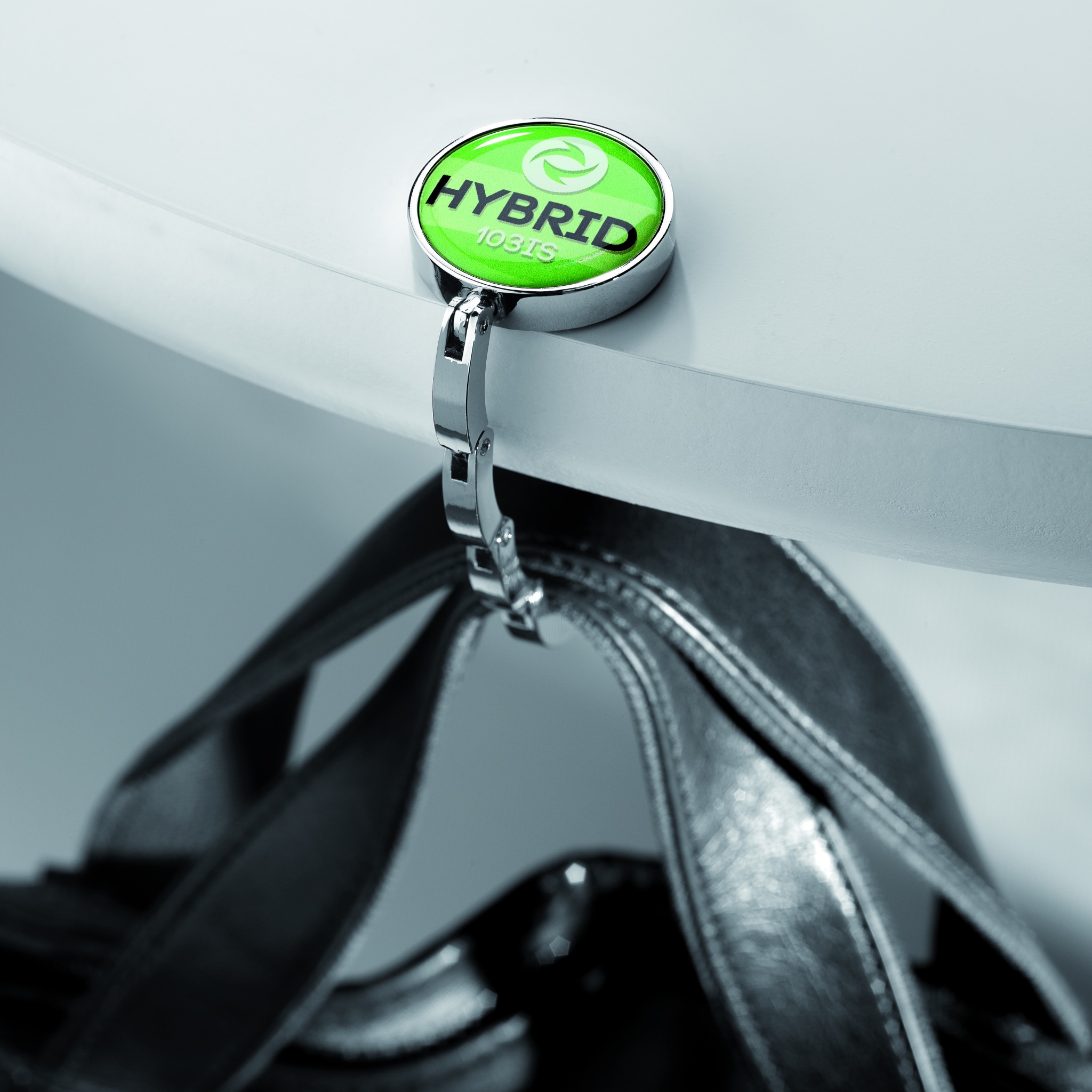 Элегантный крючок для подвешивания дамской сумочки на край стола.