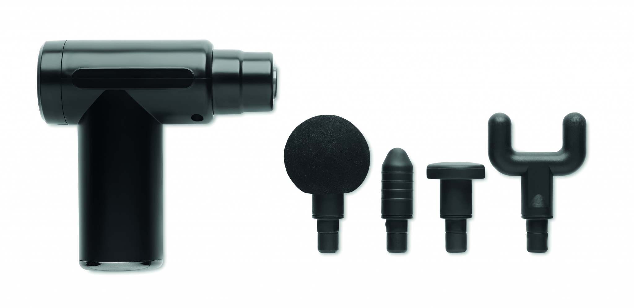 Портативный массажер из пластика с 4 сменными насадками. Доступно 6 скоростей. Литионный аккумулятор 1200 мАч.