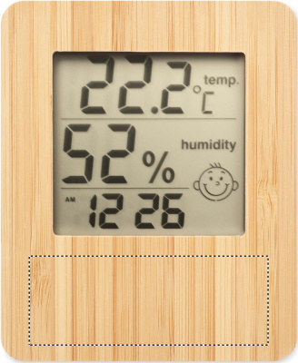 Метеостанция с бамбуковым фасадом, многофункциональный термометр. Включает в себя часы, индикатор температуры, влажности и календарь. 2 батарейки ААА в комплект не входят.