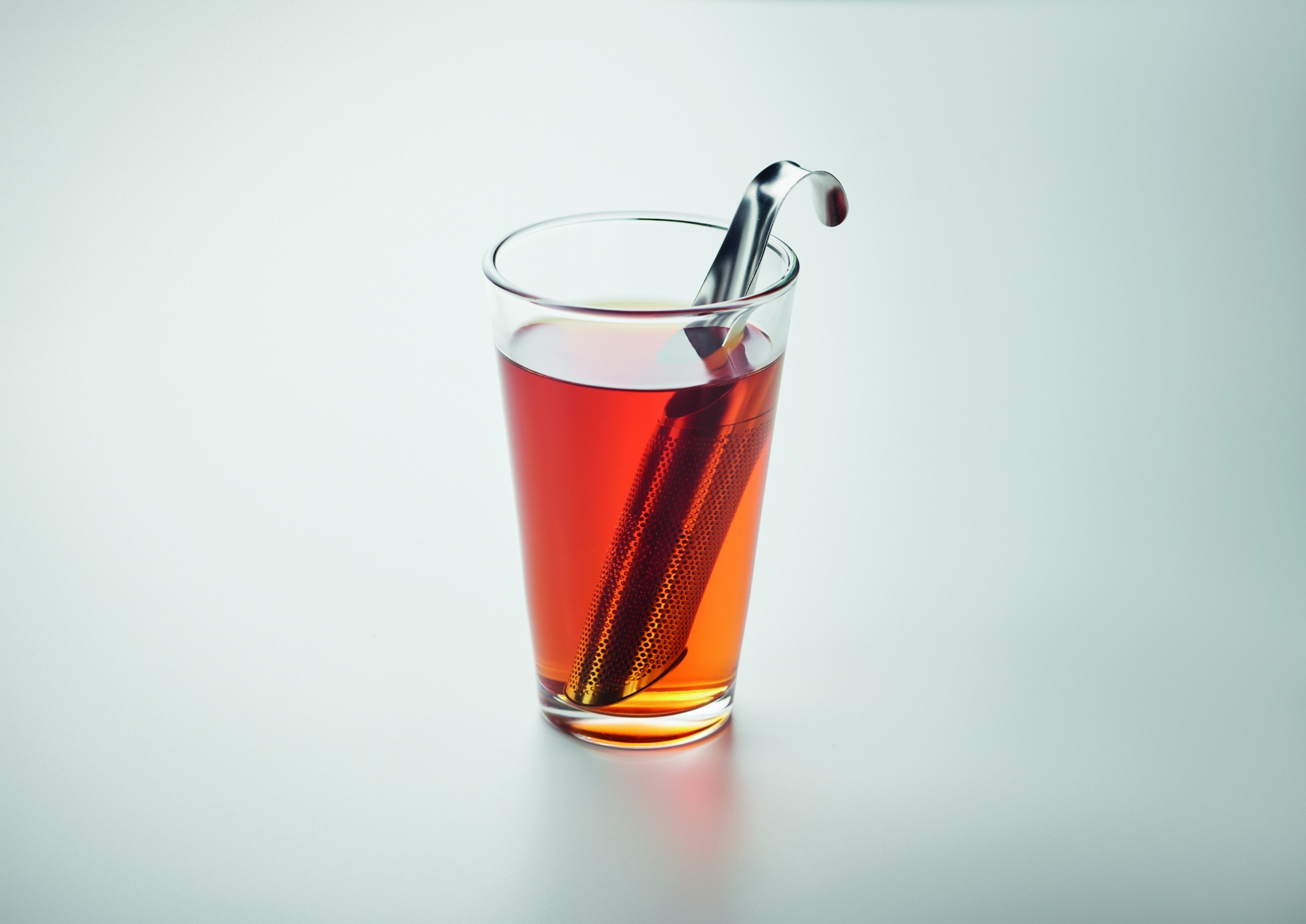 Многоразовый набор для заваривания чая из нержавеющей стали в хлопковом мешочке. В комплект входит фильтр для чая с компактным изогнутым крючком, позволяющим ему свисать над краем чашки или кружки, и щеточка для чистки.