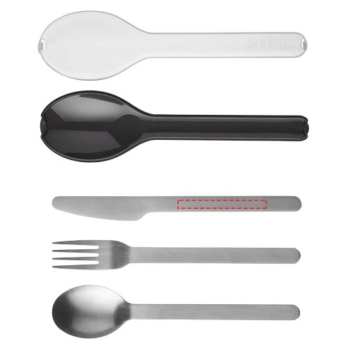 Этот стильный и практичный набор столовых приборов Ellipse включает в себя нож, вилку и ложку; все предметы изготовлены из нержавеющей стали. Столовые приборы хранятся в компактном пластиковом держателе. Можно мыть в посудомоечной машине.