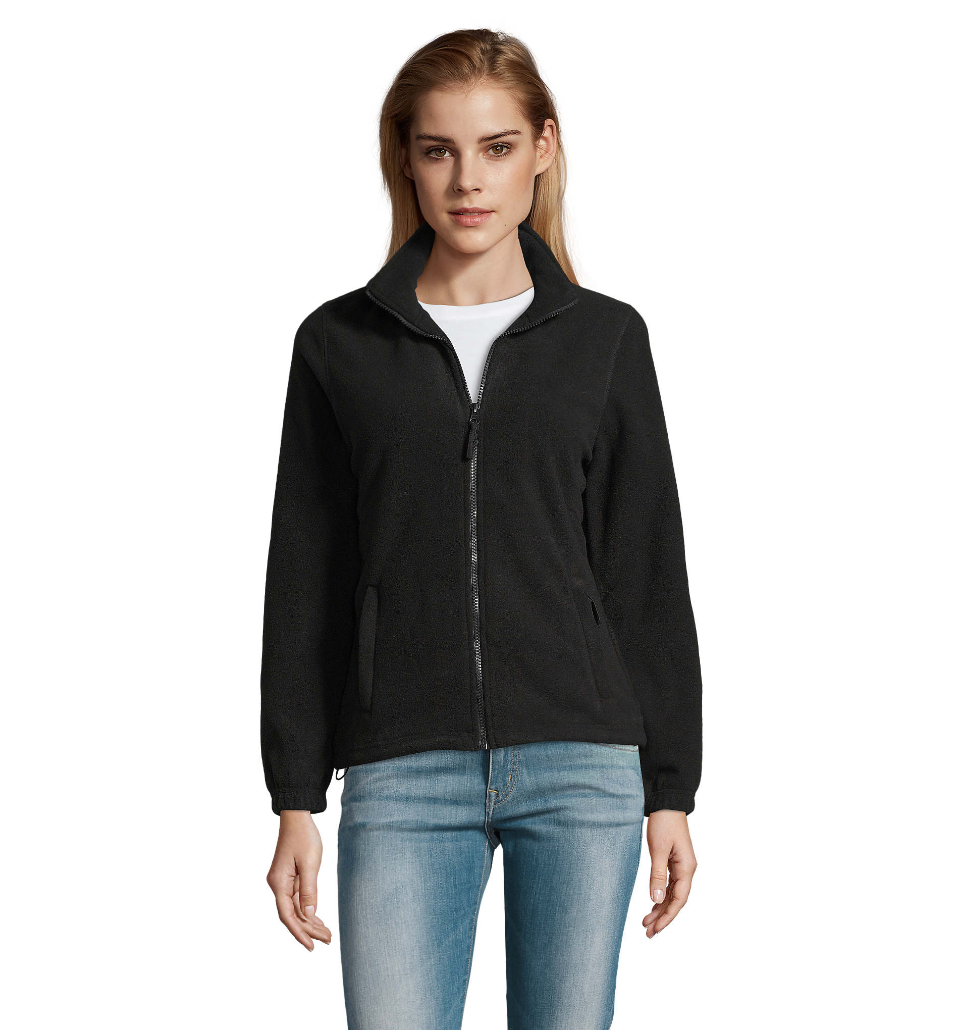 SOL'S NORTH women's fleece sweater in anti-pilling material, reinforced neck seam, high-lined collar, 2 zipped pockets, elasticated cuffs, crescent at the back, elastic drawstring at the hem. Fabric detail: 300g/m² fleece 100% polyester. OEKO-TEX. Only sold with print