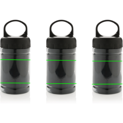 Охлаждающее полотенце из микрофибры на 100% без химикатов. 98% солнцезащитная функция до защиты от УФ-излучения 50+. Полотенце можно легко использовать, добавив немного холодной воды в бутылку, что создаст прохладное полотенце для быстрого освежения. Бутылка изготовлена из полипропилена с верхом из АБС и карабином, чтобы брать с собой на активный отдых. 77 x 30 см.