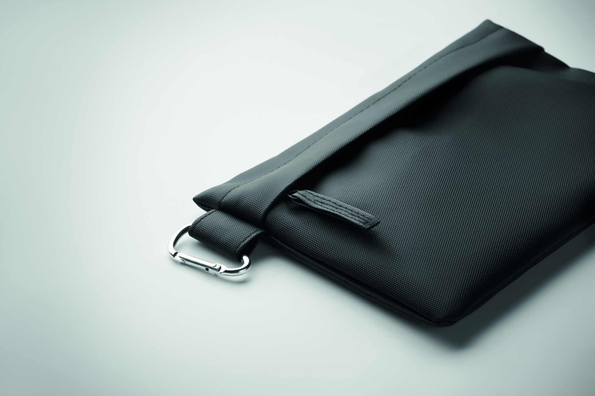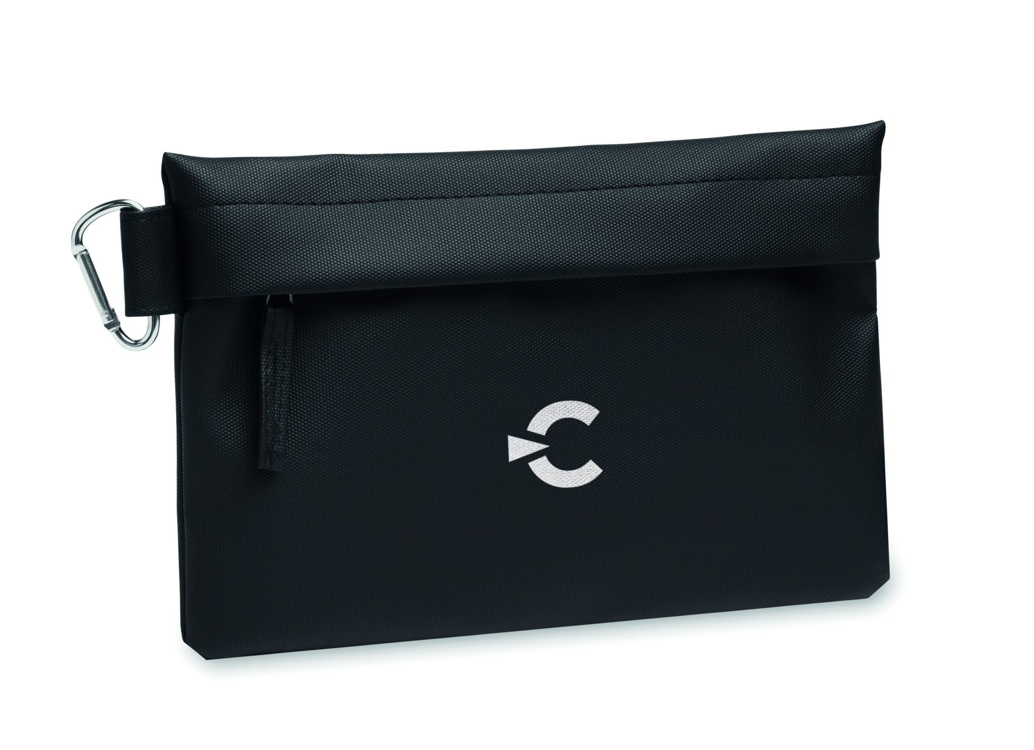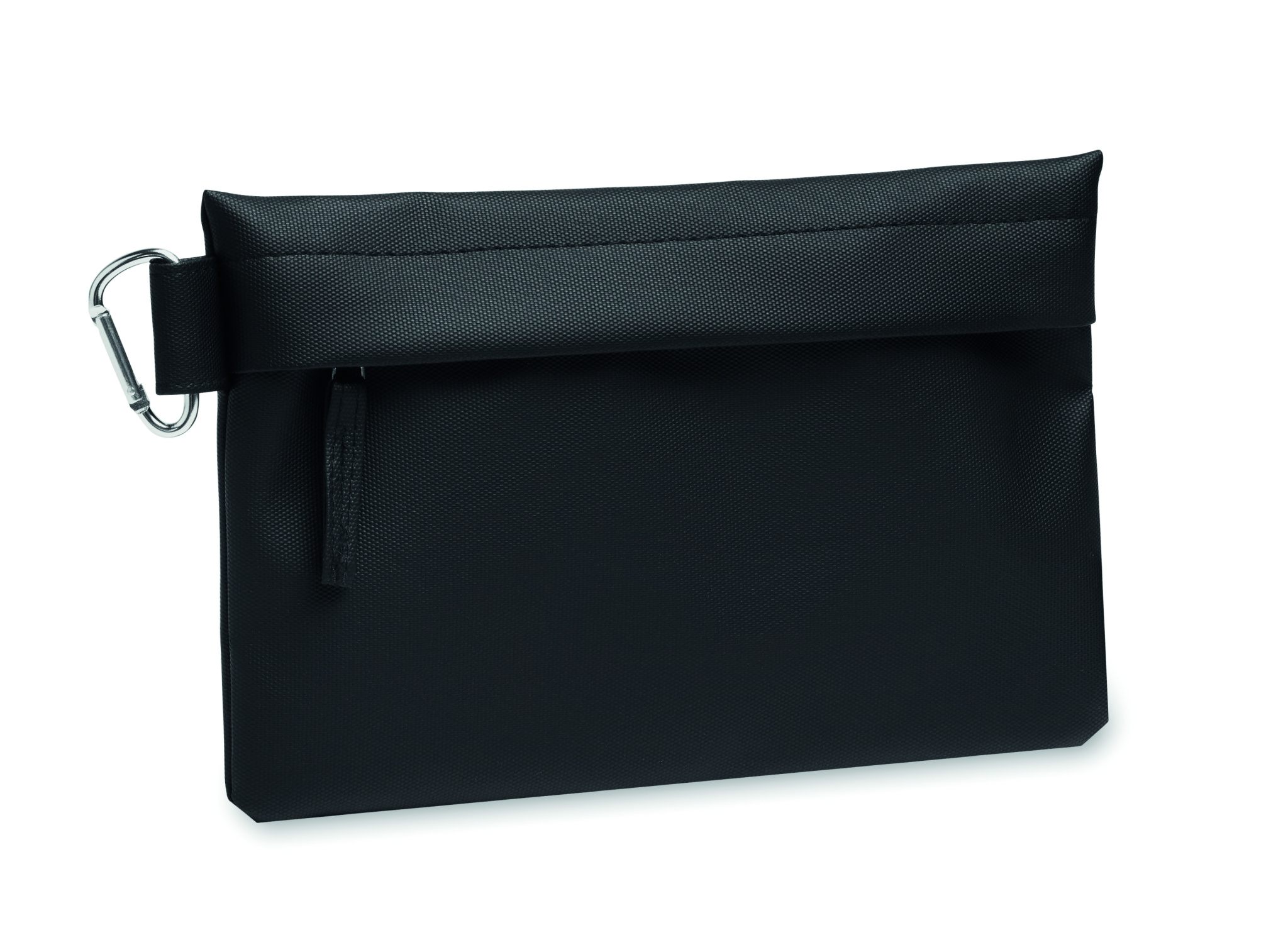 Portable organizer / pouch with PU coated 600D RPET polyester and zippered closure.