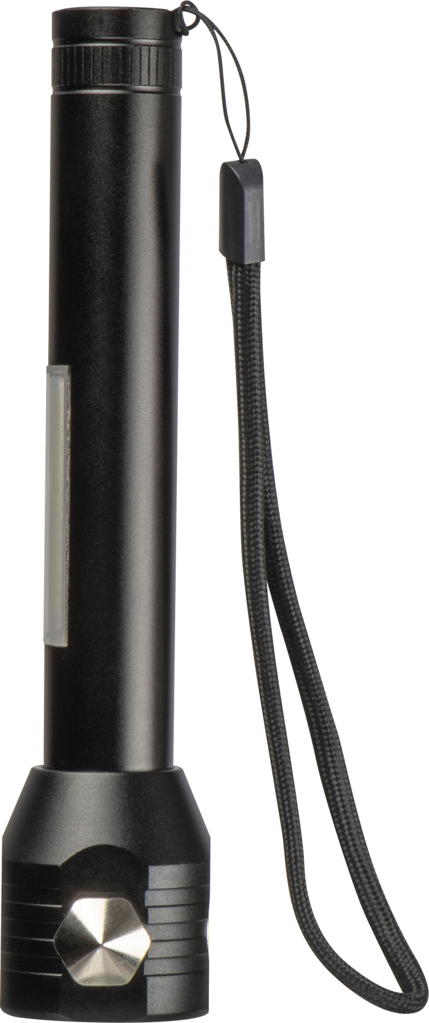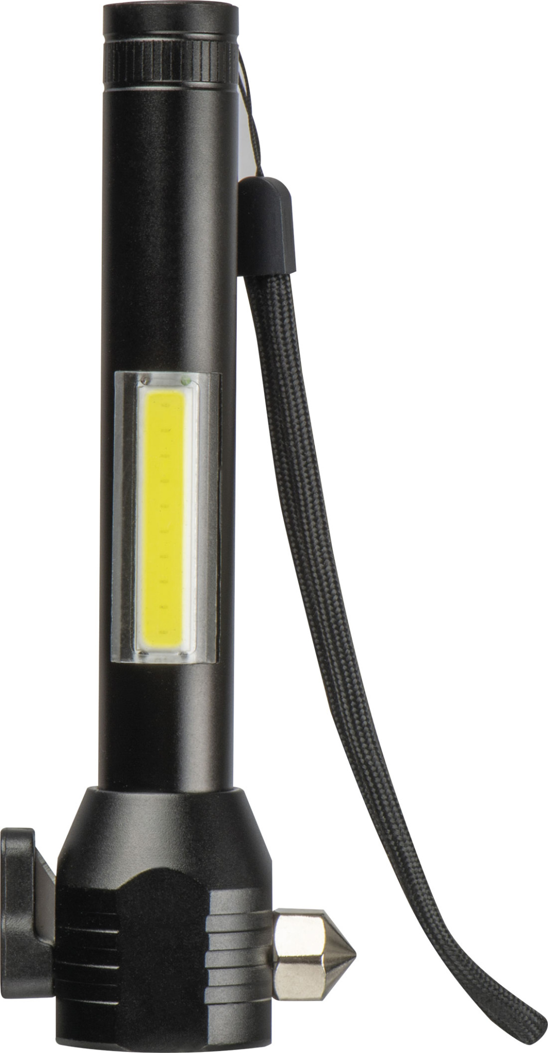 Многофункциональный перезаряжаемый фонарик COB из алюминия. Фонарик оснащен аккумулятором емкостью 500 мАч, кабелем для зарядки USB-C, молотком безопасности, резаком для ремня безопасности, ремешком на запястье и магнитом для легкого крепления.