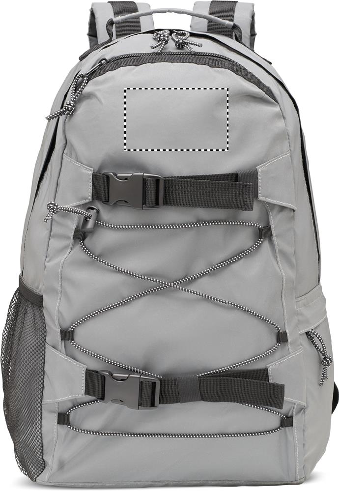 Рюкзак из полиэстера 190T с высокой светоотражающей способностью и шнуровкой спереди. Спинка, лямки и дно с мягкой подкладкой. Имеет отделение для ноутбука 15 дюймов. С одной стороны сетчатый карман, с другой стороны карман на молнии.