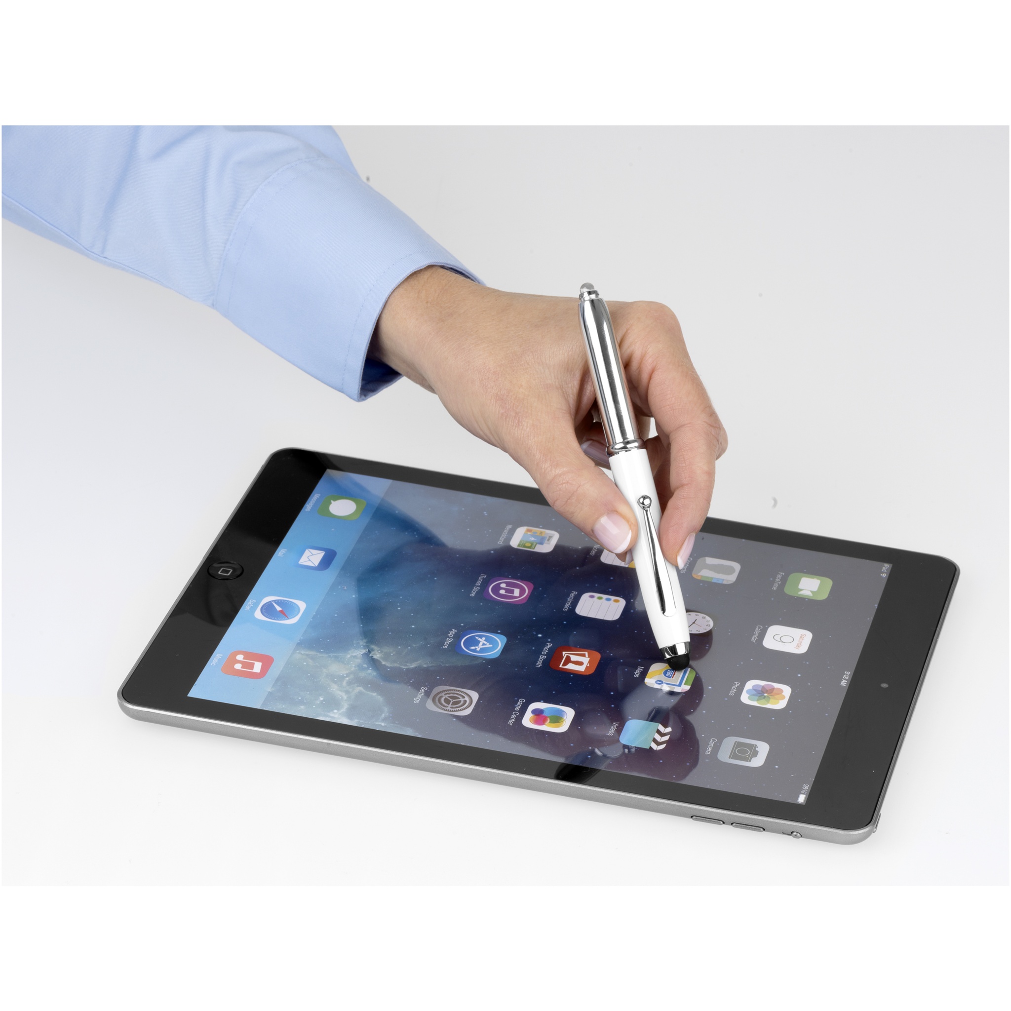 Шариковая ручка-стилус с одним светодиодом и съемным колпачком. Батарейки включены в комплект.