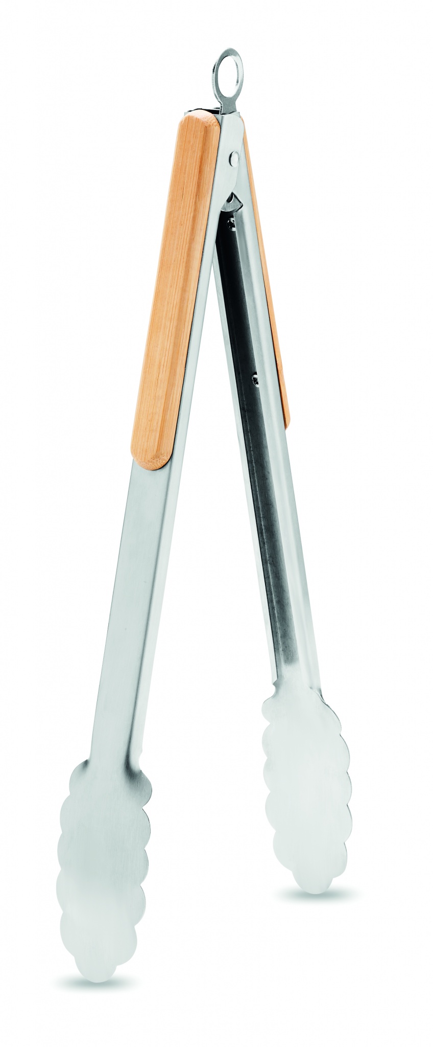 Щипцы для барбекю из нержавеющей стали с бамбуковыми ручками. Механизм блокировки.