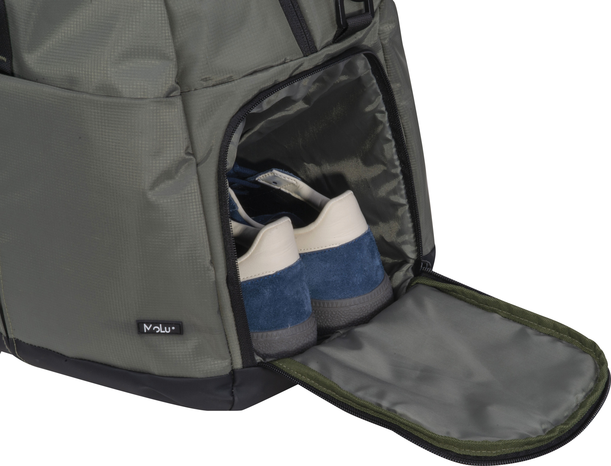 Спортивная и дорожная сумка MoLu XXL – оливково-зеленая, прочная и экологичная. Идеально сочетается с поясной сумкой MoLu – тот же внешний вид, тот же стандарт качества. Много места для занятий спортом, путешествий и повседневной жизни – с отдельным отделением для обуви для дополнительного комфорта. Изготовлена из переработанного ПЭТ, отличается прочной конструкцией и продуманным дизайном. Настоящая компактная и стильная сумка – для всего, что нужно взять с собой.