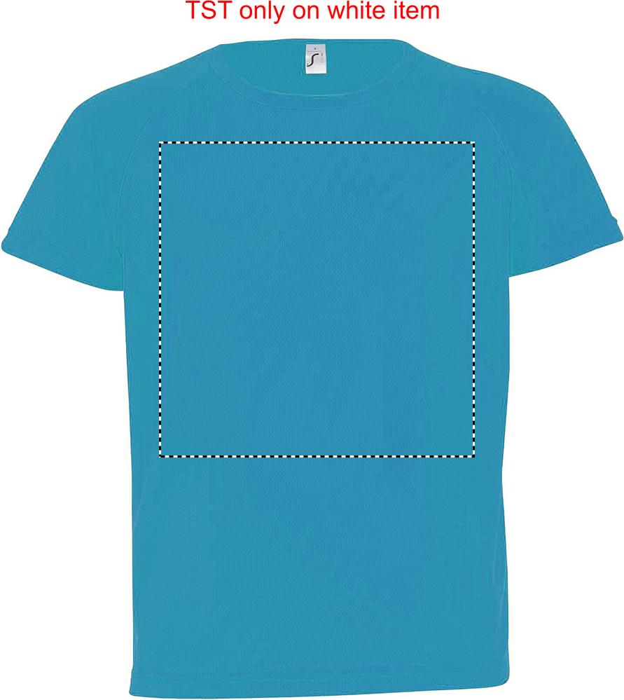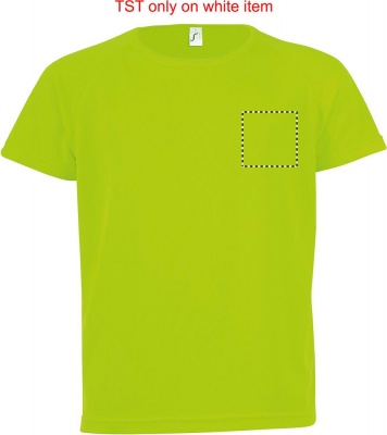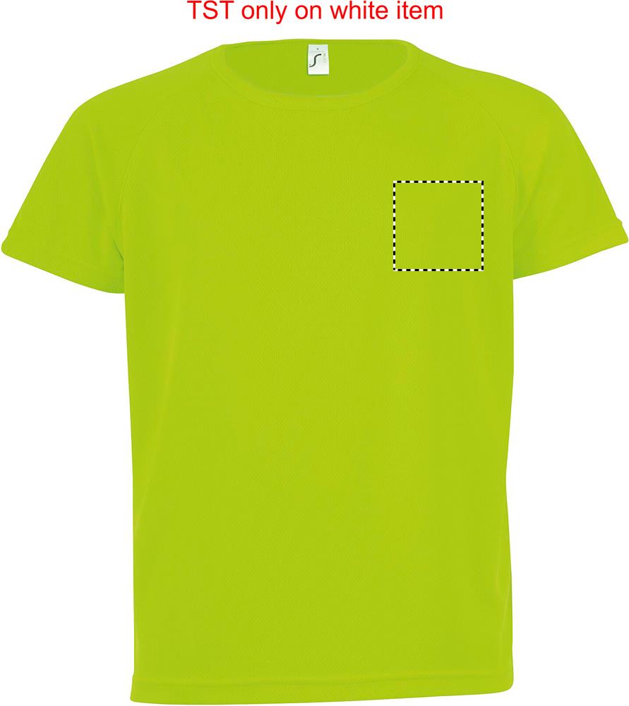 SOL'S SPORTY Kids T-shirt in breathable polyester material with raglan sleeves, banded collar and flatlock seams makes this product ideal for any sports activity. It comes in a variety of sizes and colours as well as in neon colours. Fabric details: 140g/m² 100% polyester mesh. Only sold with print. Sizes - 6 yrs: 106-116cm (XL), 8 yrs: 118-128cm (XXL), 10 yrs: 130-140cm (3XL), 12 yrs: 142-152cm (4XL)