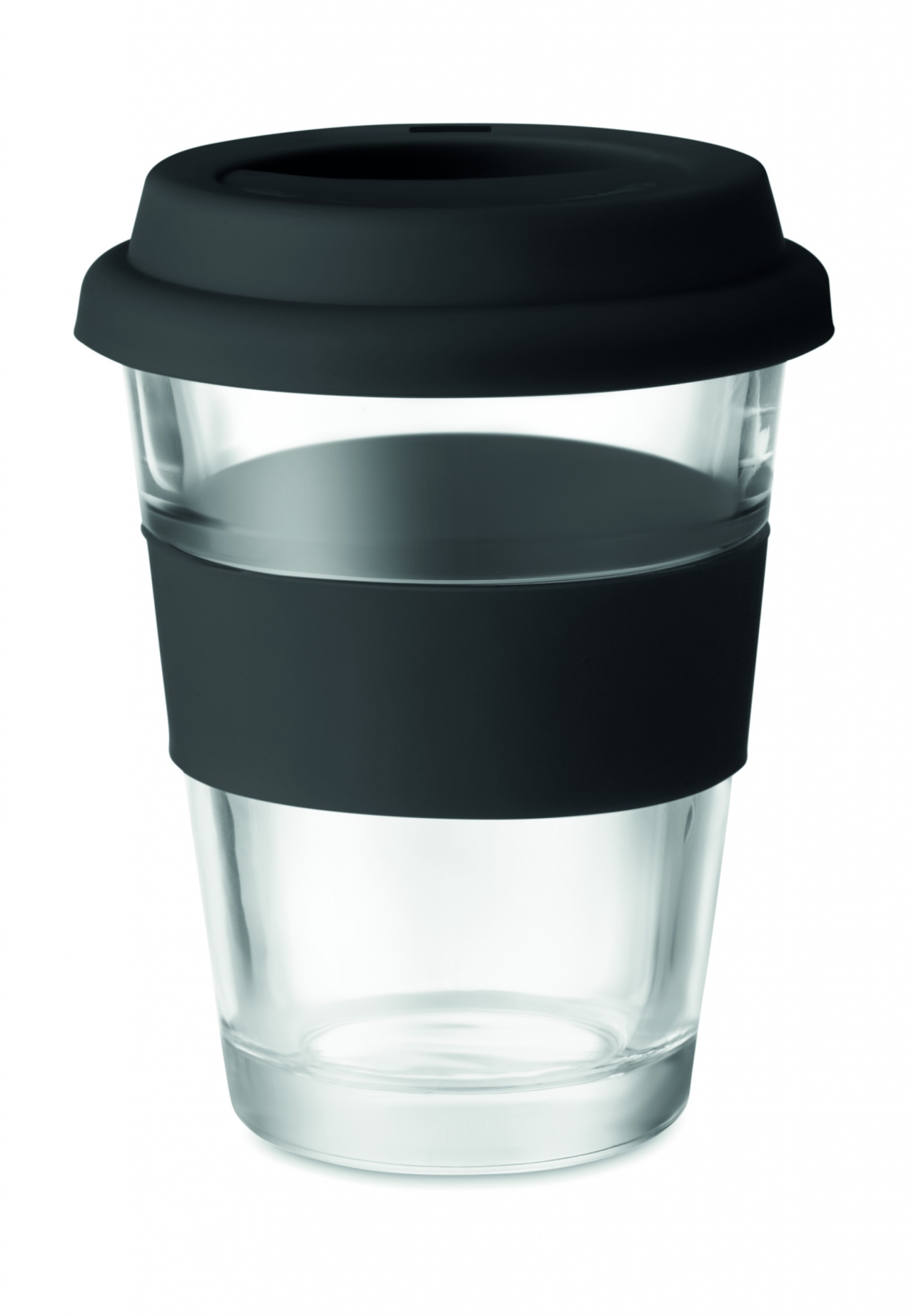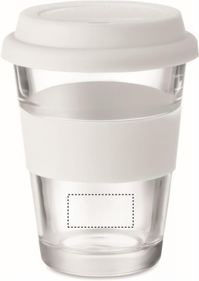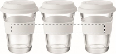 Стеклянный стакан с силиконовой крышкой и ободком. Емкость 350 мл. Поскольку это одностенная кружка, она нагревается.