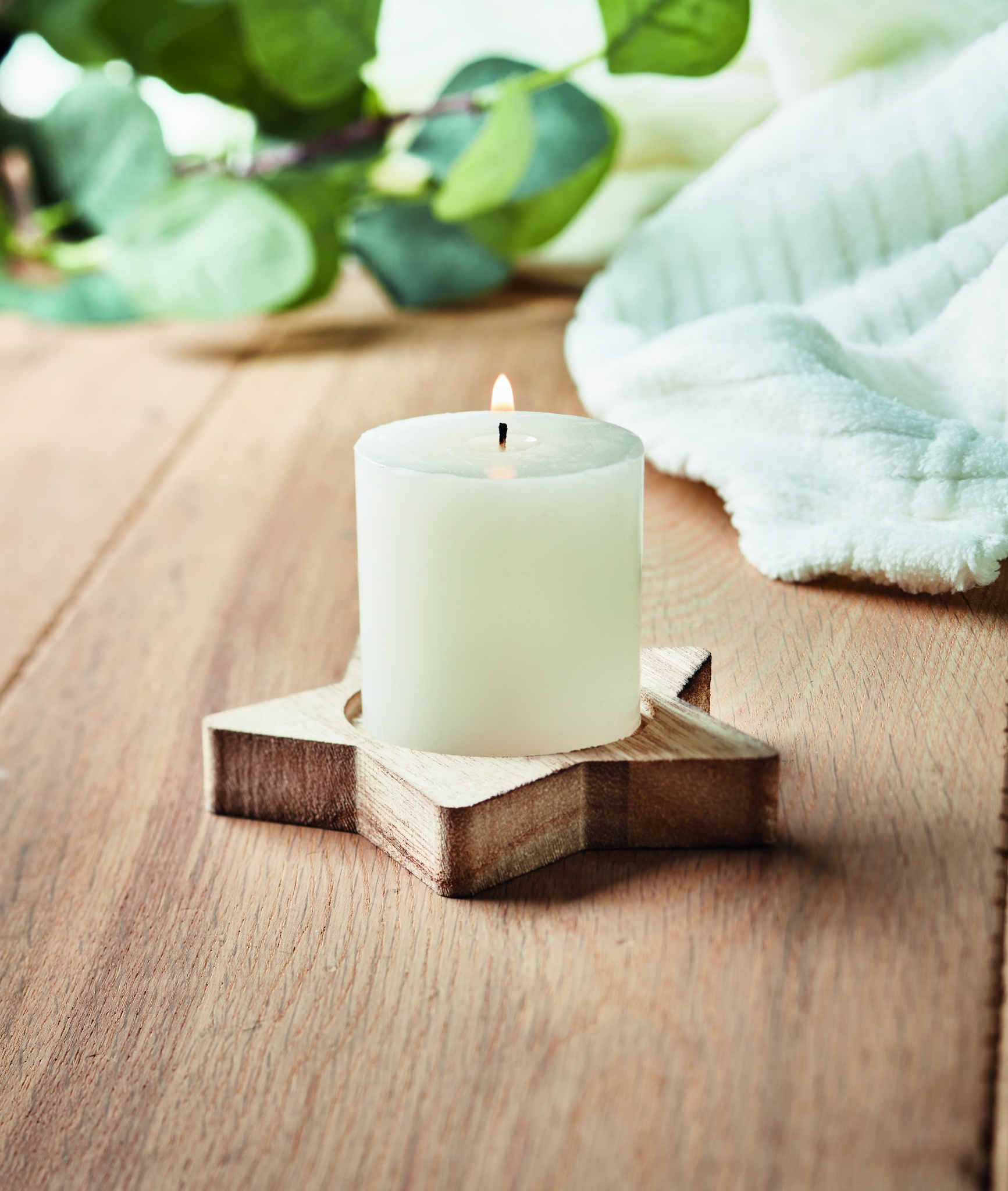 Свеча с деревянным подсвечником в форме звезды. Аромат свечи ваниль