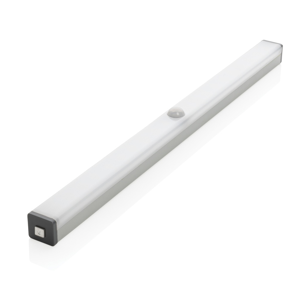 Датчик движения из алюминиевой светодиодной ленты с 20 светодиодами. С магнитной задней панелью для крепления к металлическим поверхностям. Включает 2 магнита с наклейками для крепления к немагнитным поверхностям. Идеально подходит для использования в гараже, над столом, в коридоре или в шкафу. Два режима: непрерывное или автоматическое обнаружение датчика. Светодиодный светильник включится при обнаружении движения и выключится через 35 секунд, если больше не будет обнаружено движения. С литиевой батареей емкостью 500 мАч для непрерывной работы до 3,5 часов и расстоянием датчика до 3 метров. 30 люмен. Зарядка через USB с помощью входящего в комплект кабеля micro USB без ПВХ.