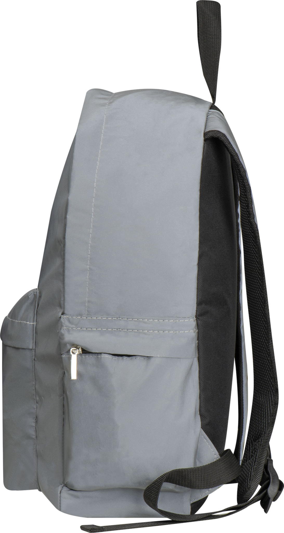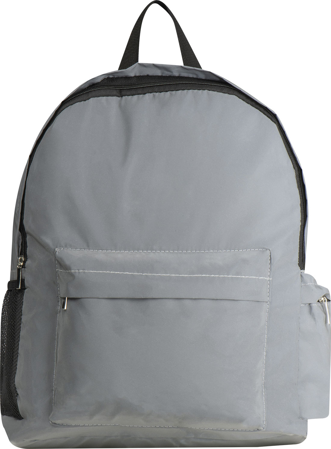 Для большей видимости! Высокоотражающий рюкзак из полиэстера 190T и 600D. Имеет отделение для ноутбука, боковой сетчатый карман, боковой карман на молнии, мягкие регулируемые плечевые ремни и передний карман на молнии.