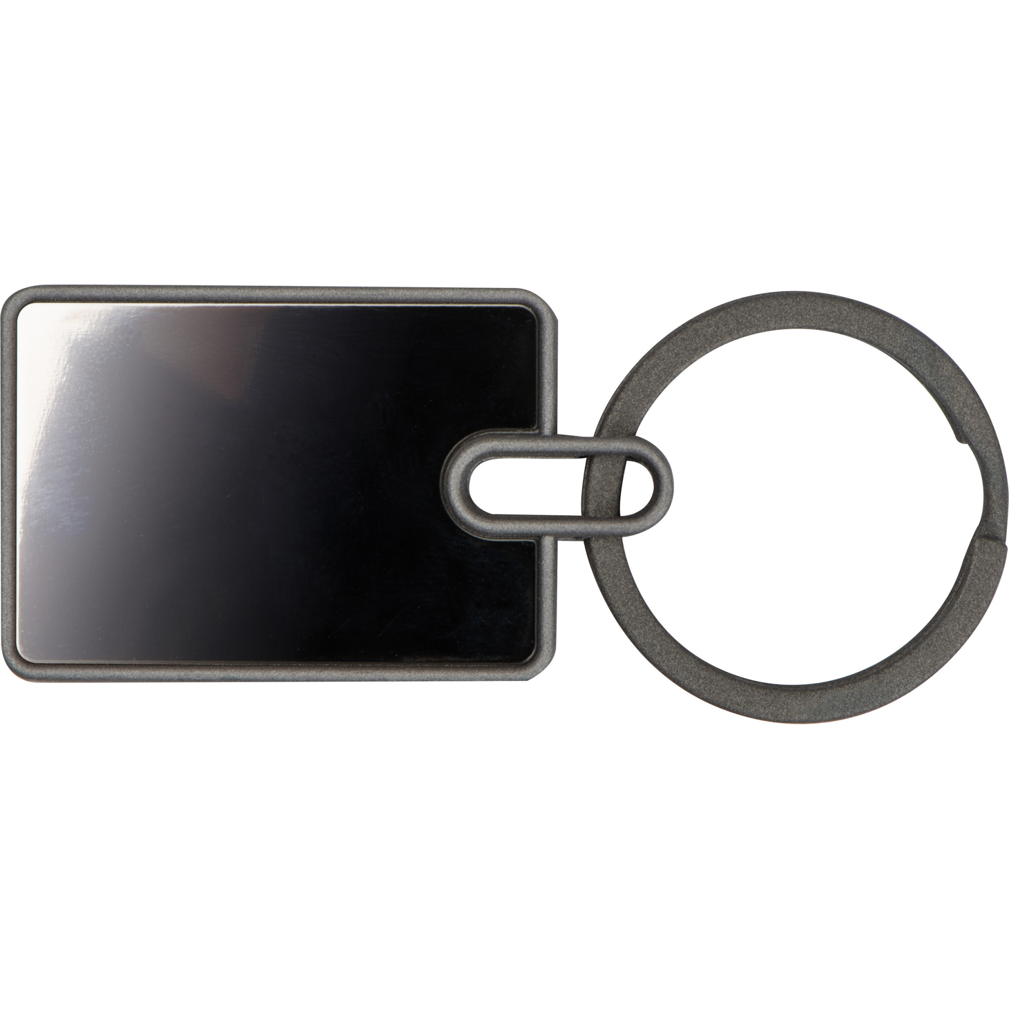 Высококачественный брелок из нержавеющей стали. Его уникальный вид достигается за счет зеркальной темной центральной части, матовой окантовки и матового кольца для ключей.