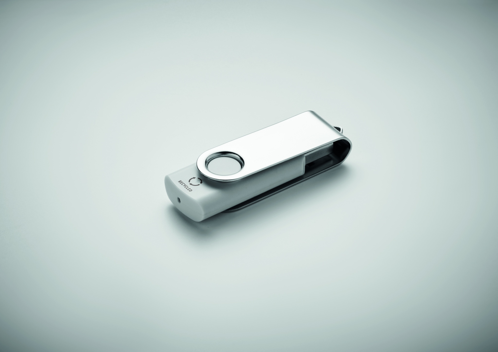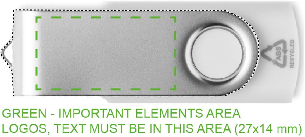 Флэш-накопитель USB 2.0 емкостью 16 ГБ с корпусом из переработанного пластика. Поверните металлическую крышку и подключите к порту USB.