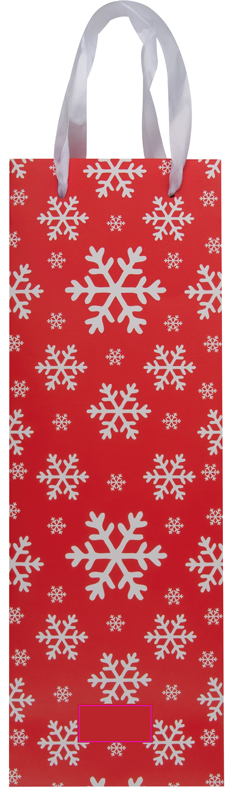 Бумажный подарочный пакет с красивым рождественским дизайном и двумя ручками для переноски бутылки вина. Мы наклеиваем ваш логотип на этикетку CMYK на пакет.