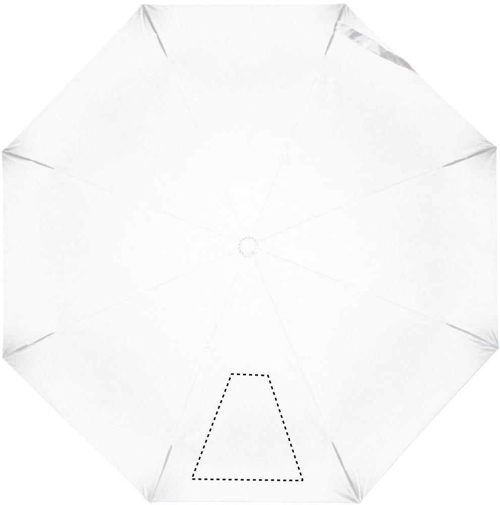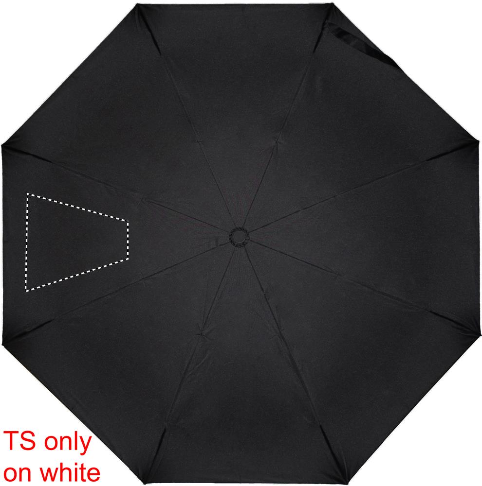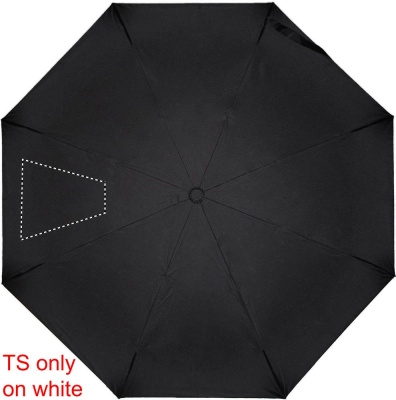 Sektionsparaply, 21 tum med stormfunktion i 190T pongee material med pläterat stålskaft, svarta med 2 sektioner glasfiber och kromade metallspetsar. Svart gummerat handtag med kupning. Viks ihop i tre sektioner. Automatisk stängning och öppning. Inkluderar matchande påse.