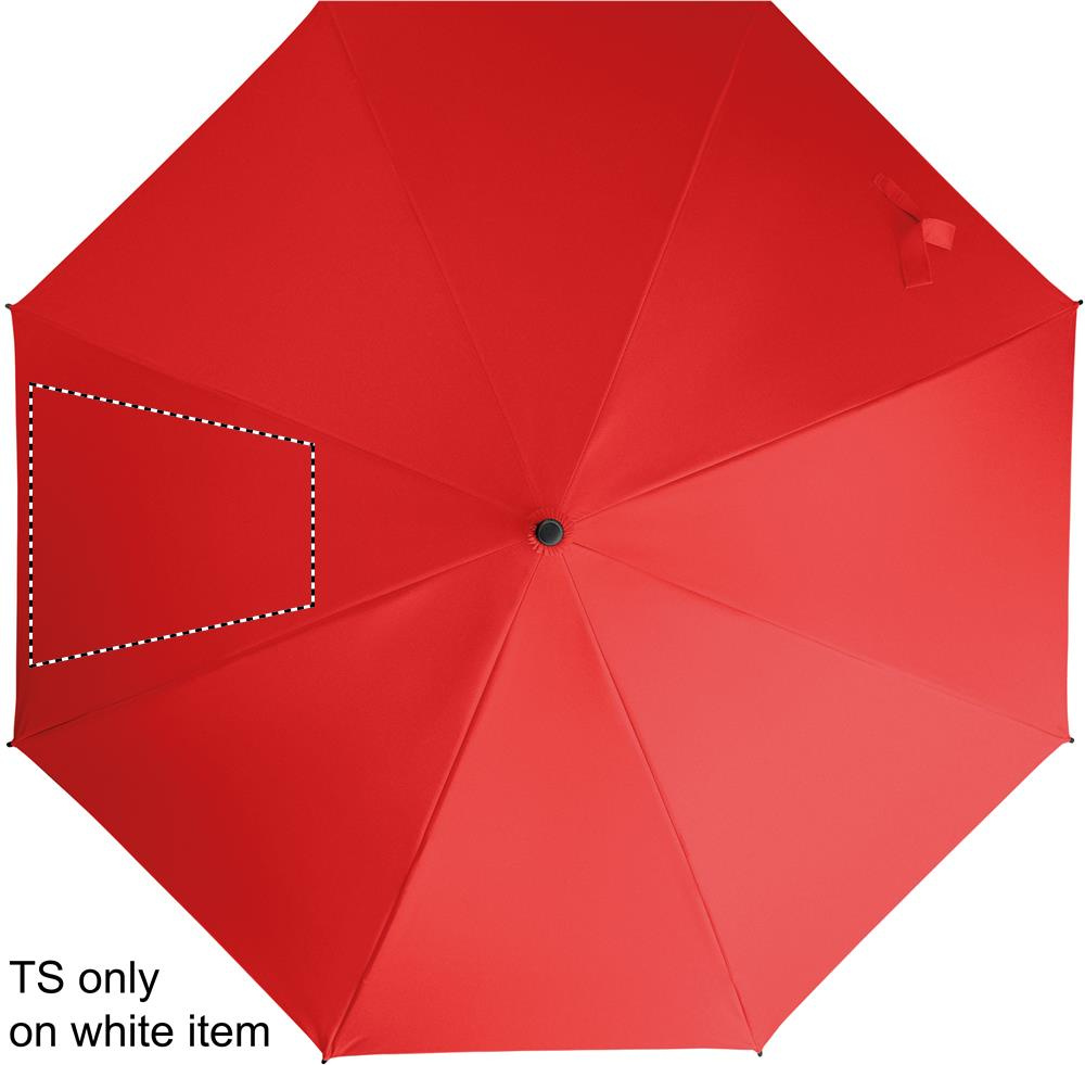 23 tum automatiskt öppningsbart, stormsäkert paraply med skaft i glasfiber och paneler i 190T pongee-tyg. Spetsar och topp i plast. Böjt handtag i gummerad PP-plast. Manuell stängning.
